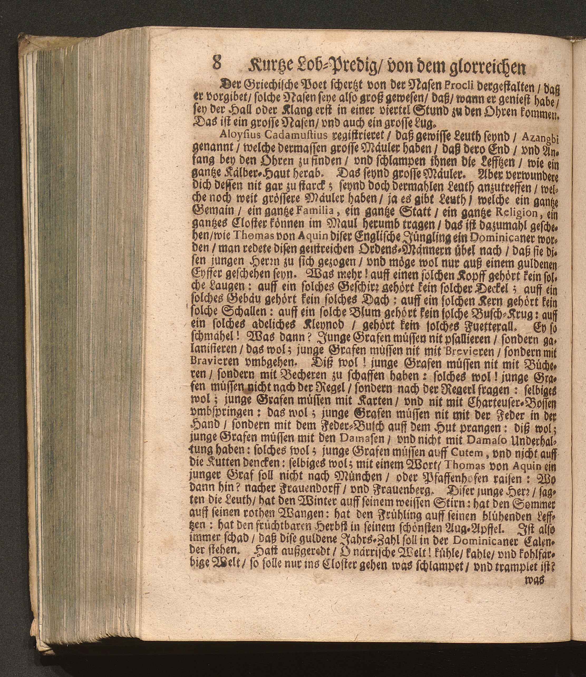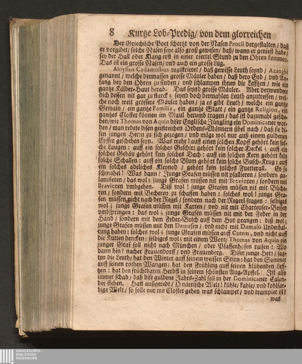 Der klare Sonnen-Schein/ An dem heiligen/ vnd berühmten Dominicaner-Orden. Das ist: Ein kurtze Lob-Predig von dem glorreichen/ vnd Englischen Doctore Thoma Aquinate / Welche Jn Gegenwart eines hohen/ vnd häuffigen Adels/ wie auch eines Volckreichen Auditorij an dessen H. Fest-Tag auff der Cantzel in der Herren P. P. Prediger Kirchen zu Grätz in Steyrmarck hat vorgetragen P. Fr. Abraham à S. Clara, Augustiner Baarfüsser/ [et]c.