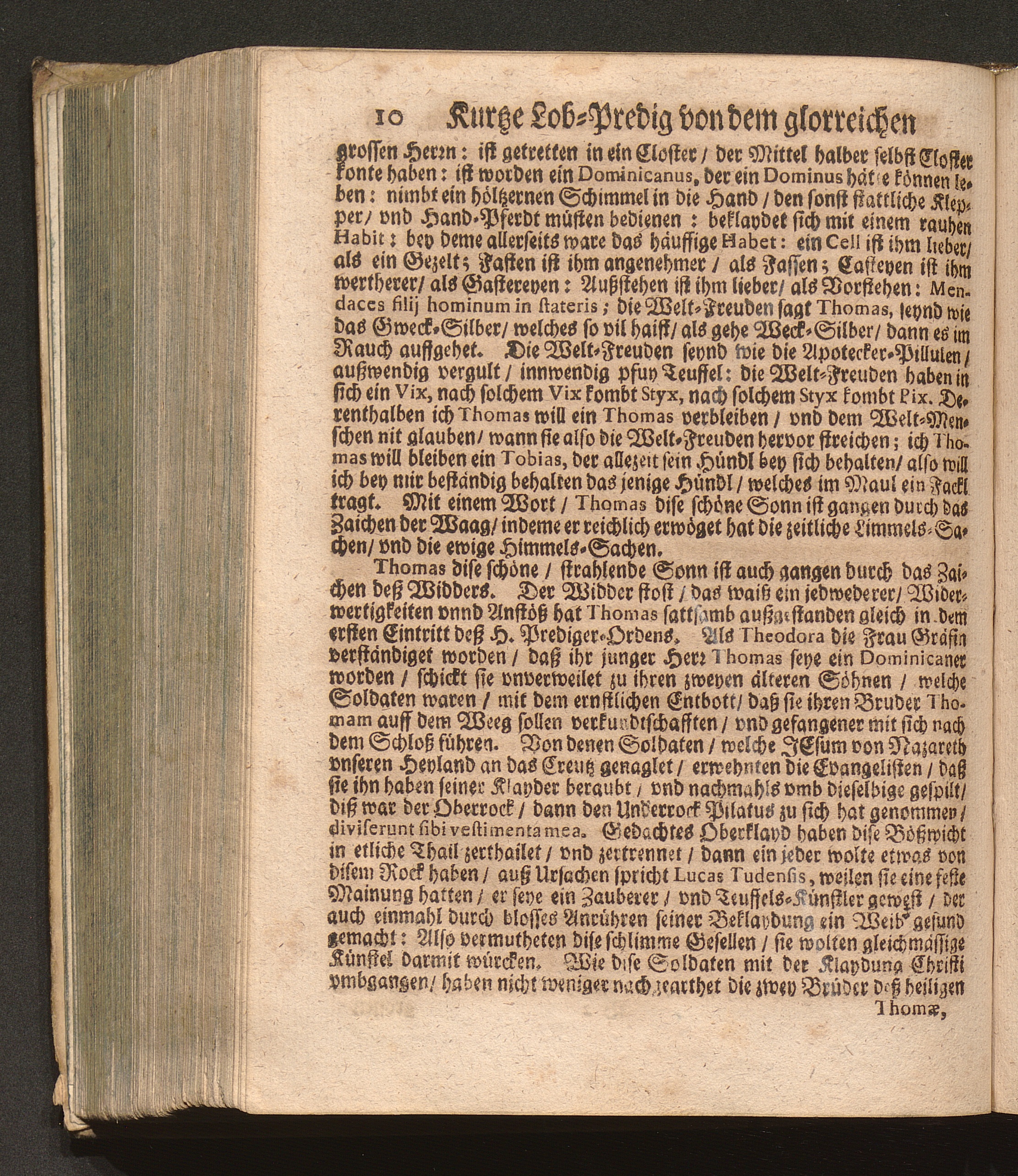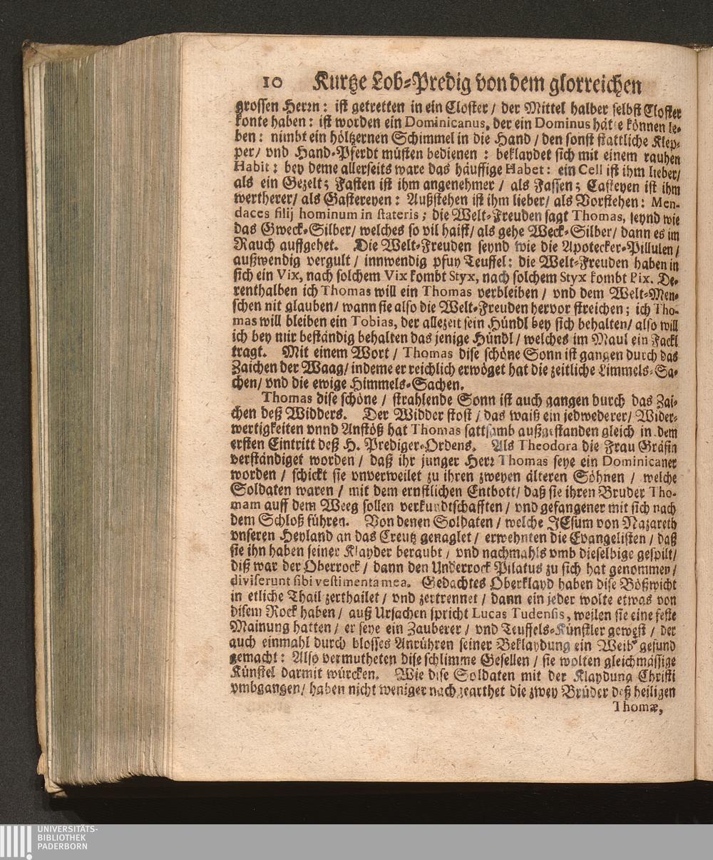 Der klare Sonnen-Schein/ An dem heiligen/ vnd berühmten Dominicaner-Orden. Das ist: Ein kurtze Lob-Predig von dem glorreichen/ vnd Englischen Doctore Thoma Aquinate / Welche Jn Gegenwart eines hohen/ vnd häuffigen Adels/ wie auch eines Volckreichen Auditorij an dessen H. Fest-Tag auff der Cantzel in der Herren P. P. Prediger Kirchen zu Grätz in Steyrmarck hat vorgetragen P. Fr. Abraham à S. Clara, Augustiner Baarfüsser/ [et]c.