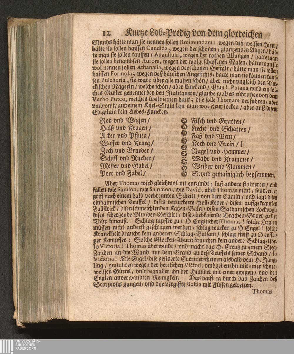 Der klare Sonnen-Schein/ An dem heiligen/ vnd berühmten Dominicaner-Orden. Das ist: Ein kurtze Lob-Predig von dem glorreichen/ vnd Englischen Doctore Thoma Aquinate / Welche Jn Gegenwart eines hohen/ vnd häuffigen Adels/ wie auch eines Volckreichen Auditorij an dessen H. Fest-Tag auff der Cantzel in der Herren P. P. Prediger Kirchen zu Grätz in Steyrmarck hat vorgetragen P. Fr. Abraham à S. Clara, Augustiner Baarfüsser/ [et]c.