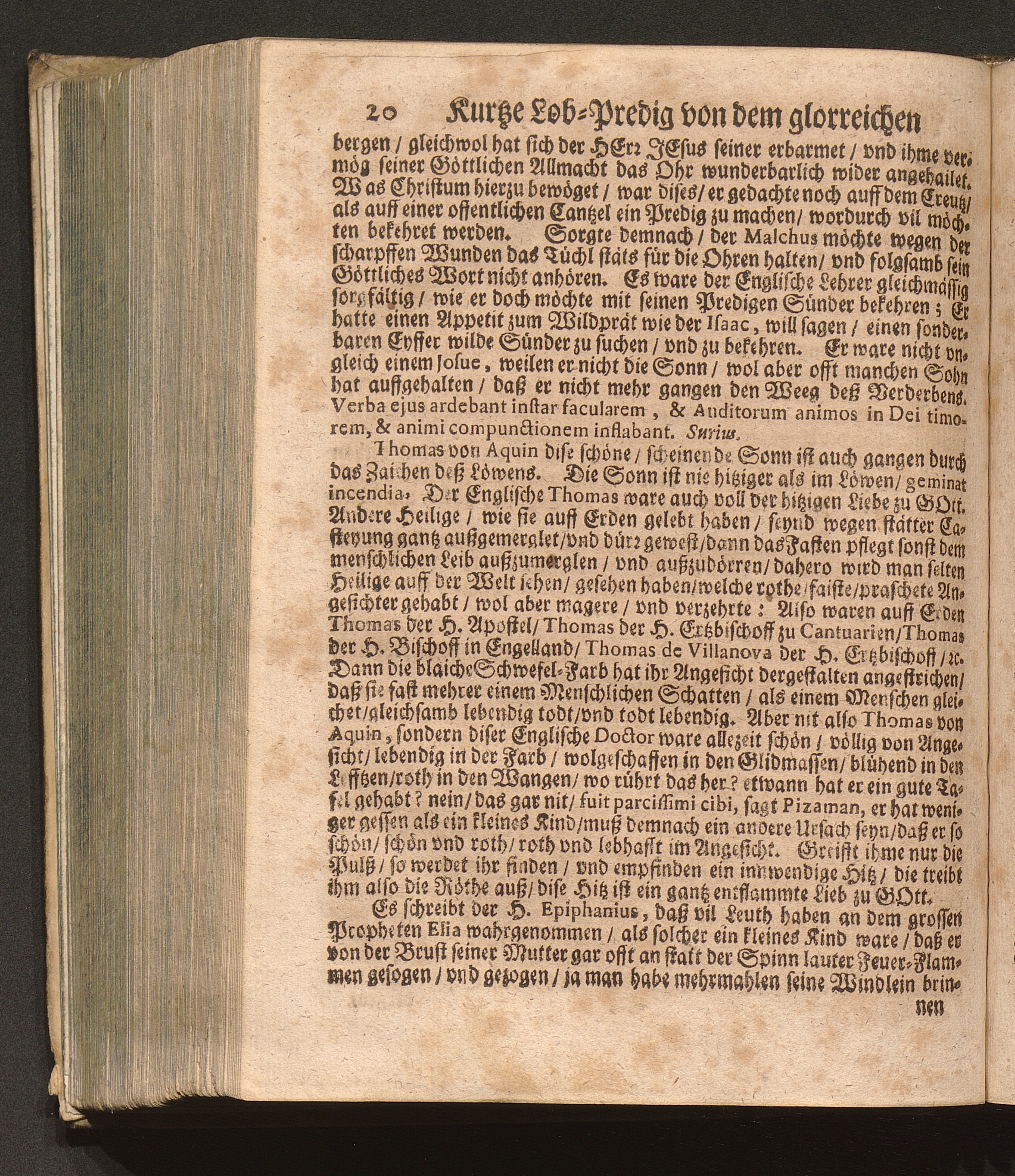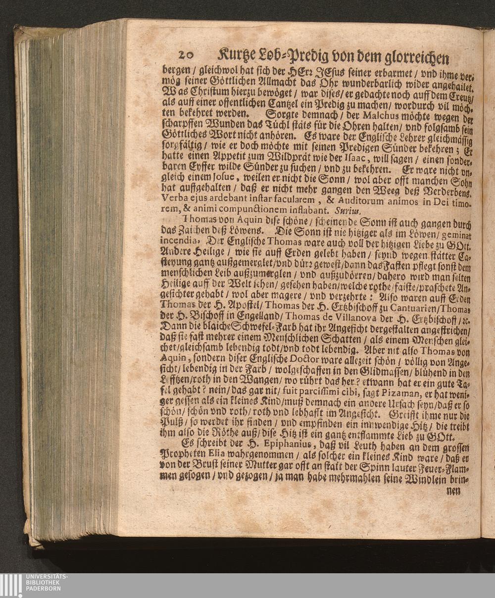 Der klare Sonnen-Schein/ An dem heiligen/ vnd berühmten Dominicaner-Orden. Das ist: Ein kurtze Lob-Predig von dem glorreichen/ vnd Englischen Doctore Thoma Aquinate / Welche Jn Gegenwart eines hohen/ vnd häuffigen Adels/ wie auch eines Volckreichen Auditorij an dessen H. Fest-Tag auff der Cantzel in der Herren P. P. Prediger Kirchen zu Grätz in Steyrmarck hat vorgetragen P. Fr. Abraham à S. Clara, Augustiner Baarfüsser/ [et]c.