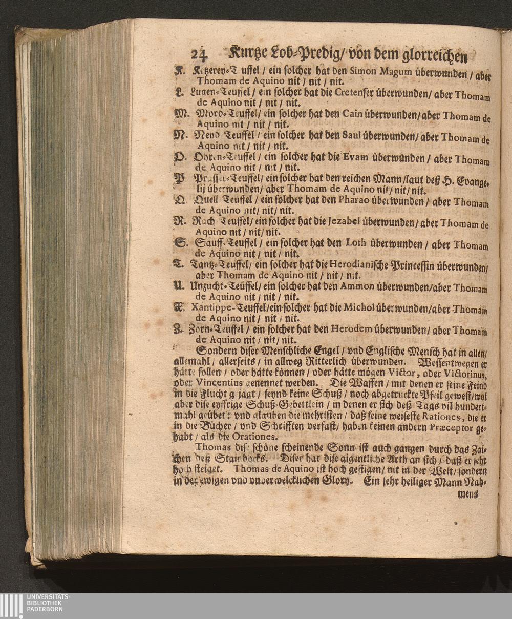 Der klare Sonnen-Schein/ An dem heiligen/ vnd berühmten Dominicaner-Orden. Das ist: Ein kurtze Lob-Predig von dem glorreichen/ vnd Englischen Doctore Thoma Aquinate / Welche Jn Gegenwart eines hohen/ vnd häuffigen Adels/ wie auch eines Volckreichen Auditorij an dessen H. Fest-Tag auff der Cantzel in der Herren P. P. Prediger Kirchen zu Grätz in Steyrmarck hat vorgetragen P. Fr. Abraham à S. Clara, Augustiner Baarfüsser/ [et]c.