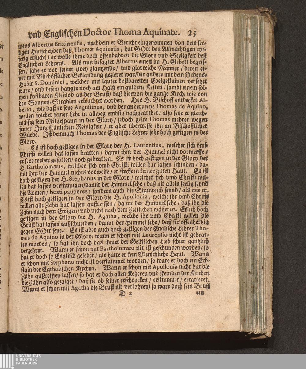 Der klare Sonnen-Schein/ An dem heiligen/ vnd berühmten Dominicaner-Orden. Das ist: Ein kurtze Lob-Predig von dem glorreichen/ vnd Englischen Doctore Thoma Aquinate / Welche Jn Gegenwart eines hohen/ vnd häuffigen Adels/ wie auch eines Volckreichen Auditorij an dessen H. Fest-Tag auff der Cantzel in der Herren P. P. Prediger Kirchen zu Grätz in Steyrmarck hat vorgetragen P. Fr. Abraham à S. Clara, Augustiner Baarfüsser/ [et]c.