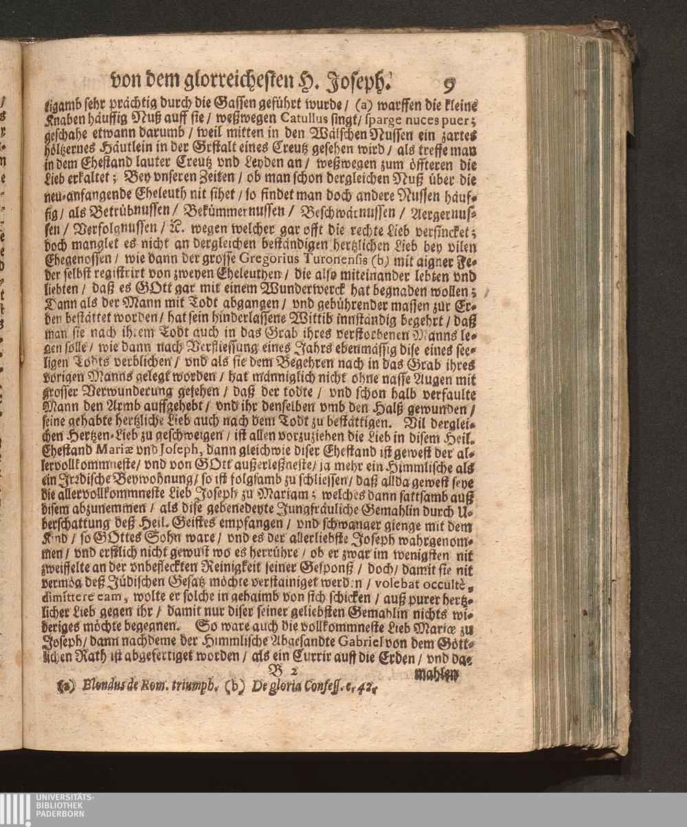 Neuerwöhlte Paradeyß-Blum/ Von dem Allerdurchleuchtigsten Ertz-Hauß Oesterreich/ vnd dessen allgehörigen Erb-Cronen vnd Provintzen/ [et]c. Das ist: Danckbarliche Lob- vnd Lieb-Verfassung von dem glorreichesten H. Joseph. Welcher hochvermögende Trost-volle Ehr- vnd Nehr-Vatter Christi für einen allgemainen Patronen vnd Schutz-Herrn mit hochfeyerlicher Solennitet vnd gröstem Eyffer/ so wol beeder Kayserl. Majest. als deß häuffig versambleten hohen Adels/ wie auch deß Geistreichen Cleri, &c. ist offentlich an- vnd auffgenomen worden den 12. Tag May/ 1675 / Jn Truck verfertiget/ Durch Pr. Fr. Abraham à S. Clara, Augustiner Baarfüsser/ [et]c.