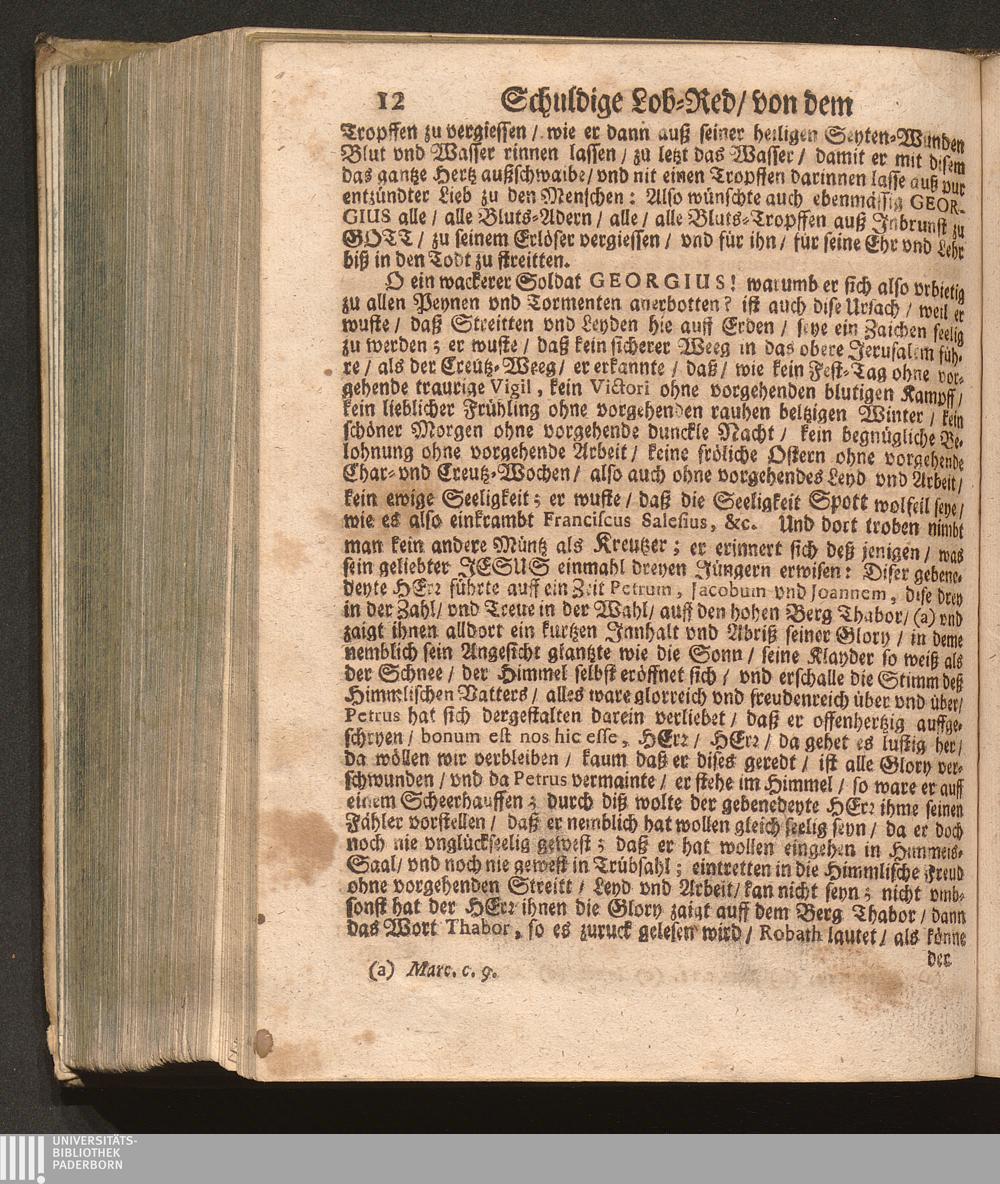 Soldaten-Glory/ Das ist: Von dem heiligen Ritter Und Haylsamen Vorbitter Georgio Schuldige Lob-Red : Welche An seinem Jährlichen Fest-Tag in dem Freysinger-Hof mitten in der Kayserlichen Residentz-Statt Wienn/ vor einem Volckreichen Auditorio, vnder dem freyen Himmel/ hoffentlich aber nicht im Lufft gesagt worden/ Und nunmehr in Truck verfertiget / Durch P. Fr. Abraham à S. Clara, Augustiner Baarfüsser/ [et]c.