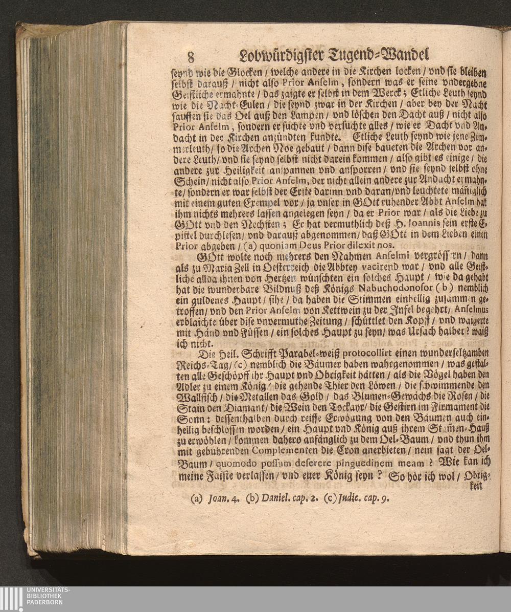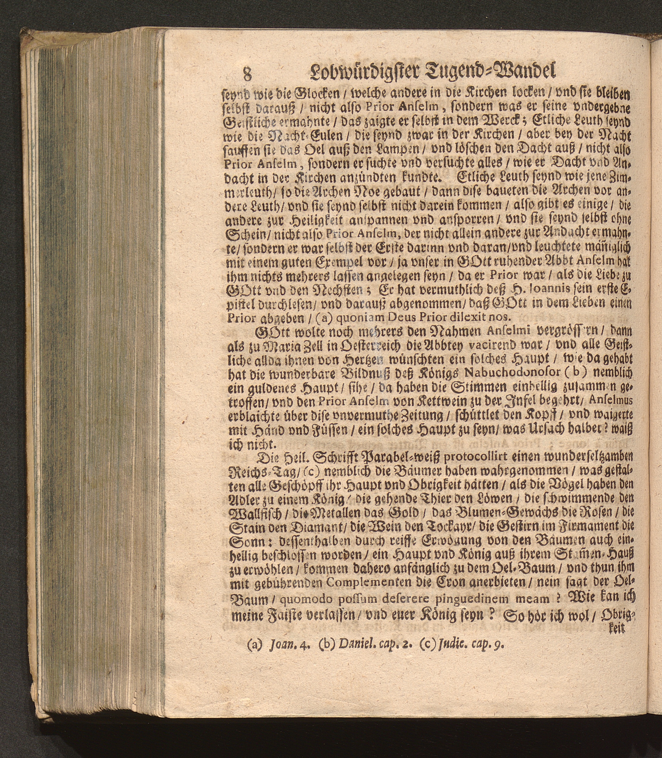 Zeugnuß vnd Verzeichnuß Eines Lobwürdigsten Tugend-Wandels/ So Jn der traurigen Leich-Besingnuß deß Weyland verstorbnen Herrn Abbts Anselm/ Zu Maria Zell in Oesterreich vnder der Ennß in einer schuldigsten Lob-Red vorgestellt/ Und Bey einer grossen Anzahl der versambleten Zuhörer gehalten worden / Durch P. Fr. Abraham à S. Clara, Augustiner Baarfüsser/ [et]c.