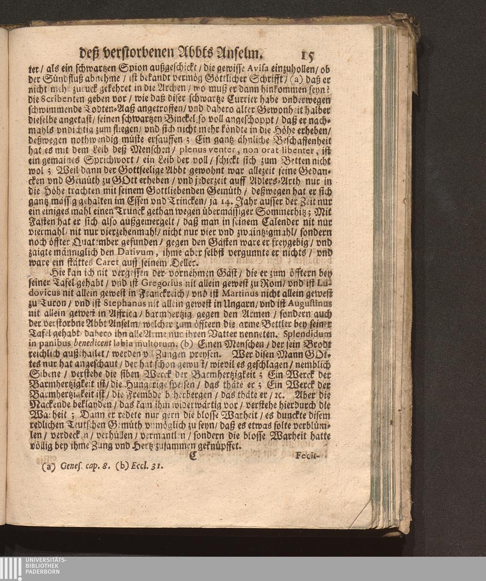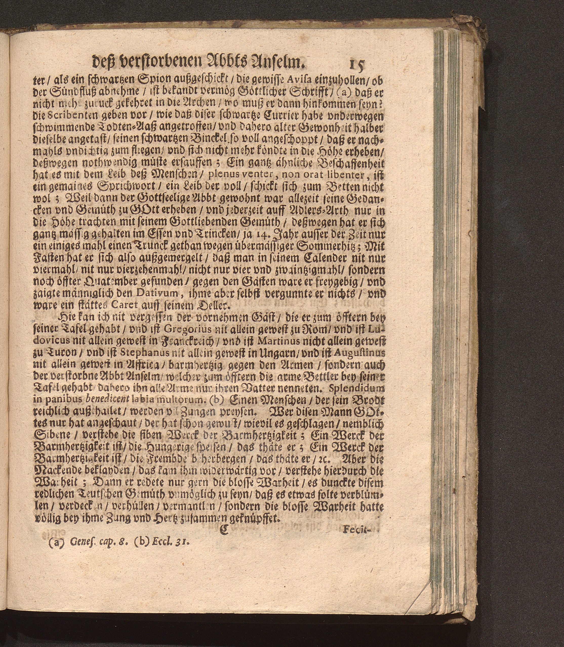 Zeugnuß vnd Verzeichnuß Eines Lobwürdigsten Tugend-Wandels/ So Jn der traurigen Leich-Besingnuß deß Weyland verstorbnen Herrn Abbts Anselm/ Zu Maria Zell in Oesterreich vnder der Ennß in einer schuldigsten Lob-Red vorgestellt/ Und Bey einer grossen Anzahl der versambleten Zuhörer gehalten worden / Durch P. Fr. Abraham à S. Clara, Augustiner Baarfüsser/ [et]c.