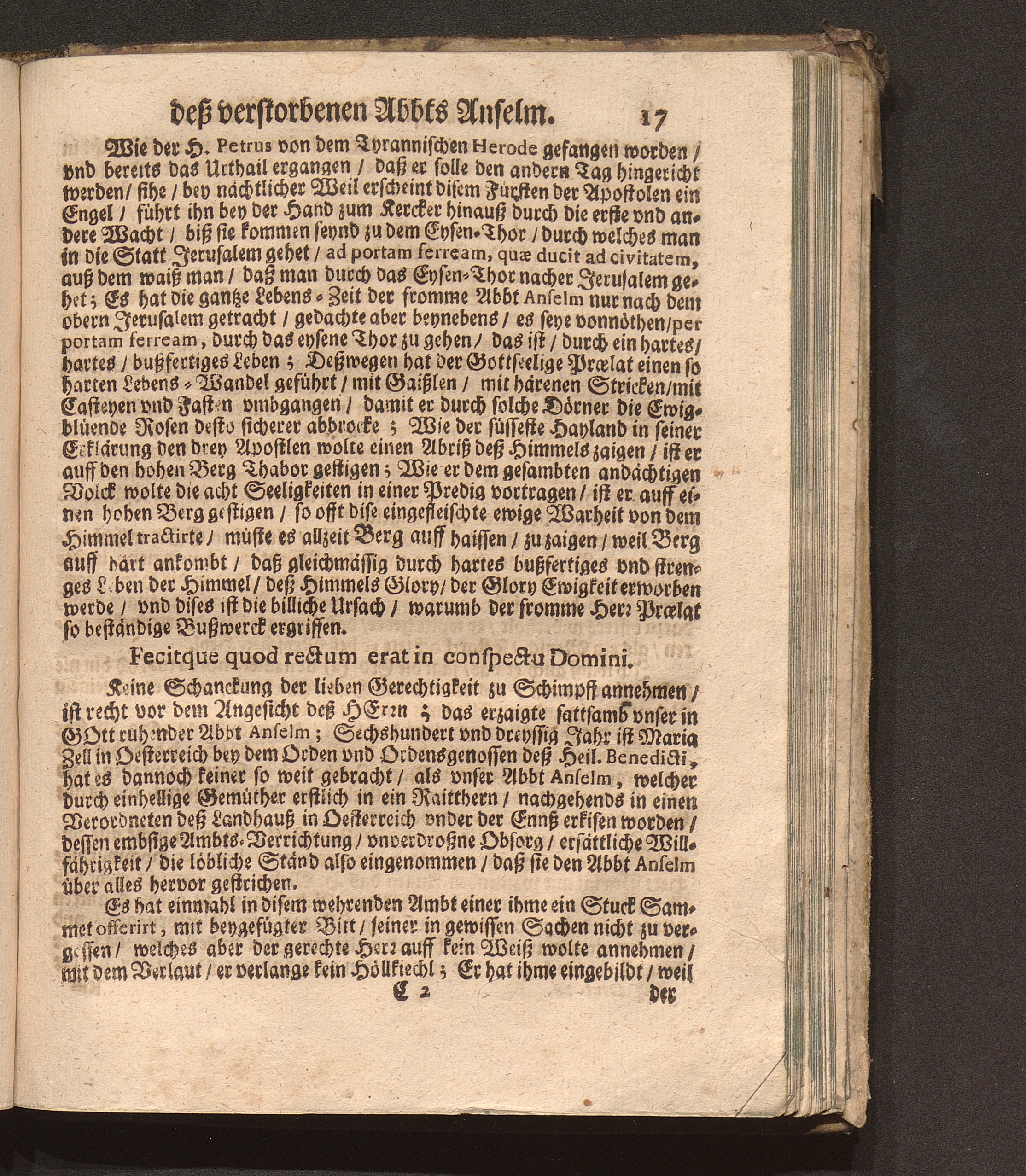 Zeugnuß vnd Verzeichnuß Eines Lobwürdigsten Tugend-Wandels/ So Jn der traurigen Leich-Besingnuß deß Weyland verstorbnen Herrn Abbts Anselm/ Zu Maria Zell in Oesterreich vnder der Ennß in einer schuldigsten Lob-Red vorgestellt/ Und Bey einer grossen Anzahl der versambleten Zuhörer gehalten worden / Durch P. Fr. Abraham à S. Clara, Augustiner Baarfüsser/ [et]c.
