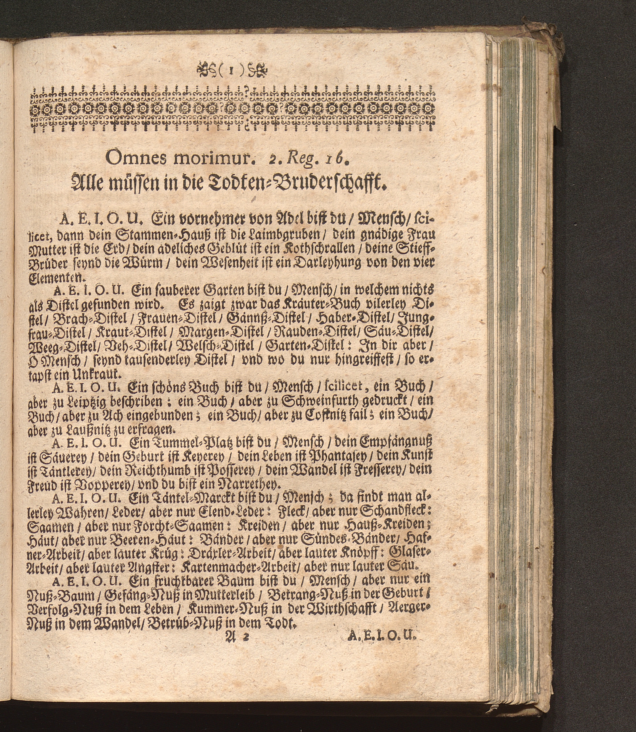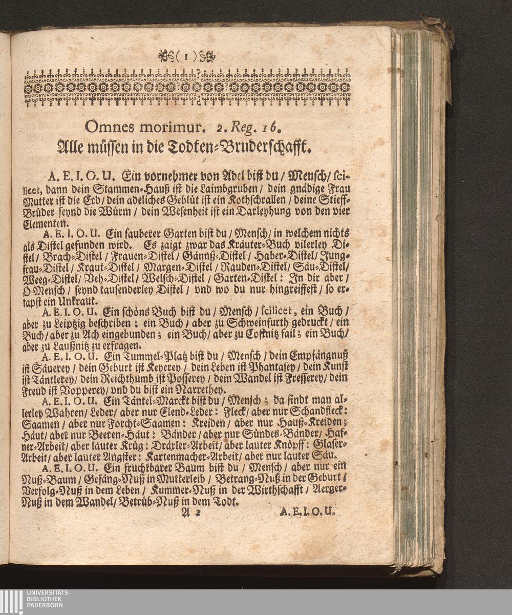 Grosse Todten-Bruderschafft/ Das ist: Ein kurtzer Entwurff Deß Sterblichen Lebens / Zusammen gesetzt Durch P. Abraham, Augustiner Baarfüsser/ Kayserlicher Prediger/ vnd dazumahl Prior/ [et]c.