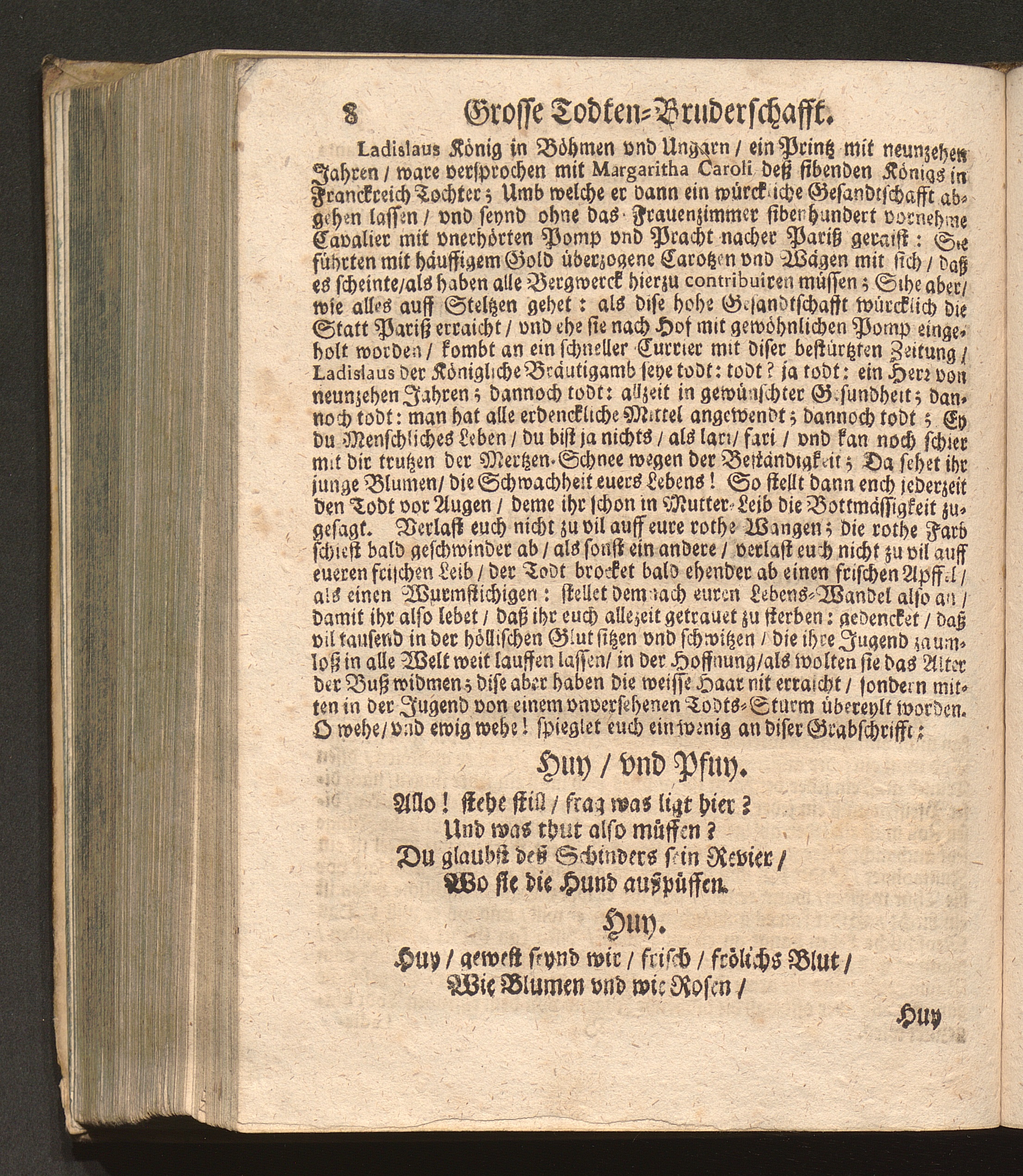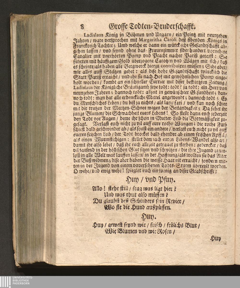 Grosse Todten-Bruderschafft/ Das ist: Ein kurtzer Entwurff Deß Sterblichen Lebens / Zusammen gesetzt Durch P. Abraham, Augustiner Baarfüsser/ Kayserlicher Prediger/ vnd dazumahl Prior/ [et]c.