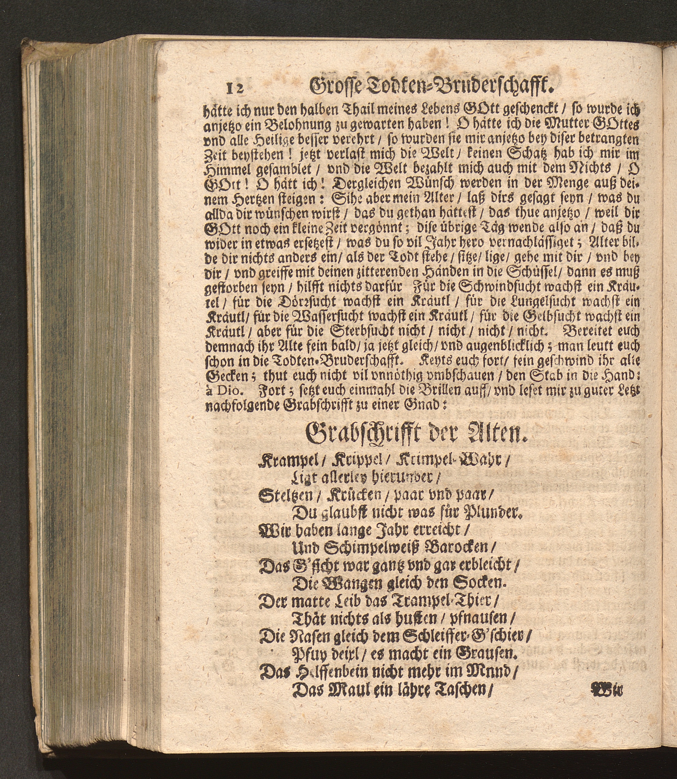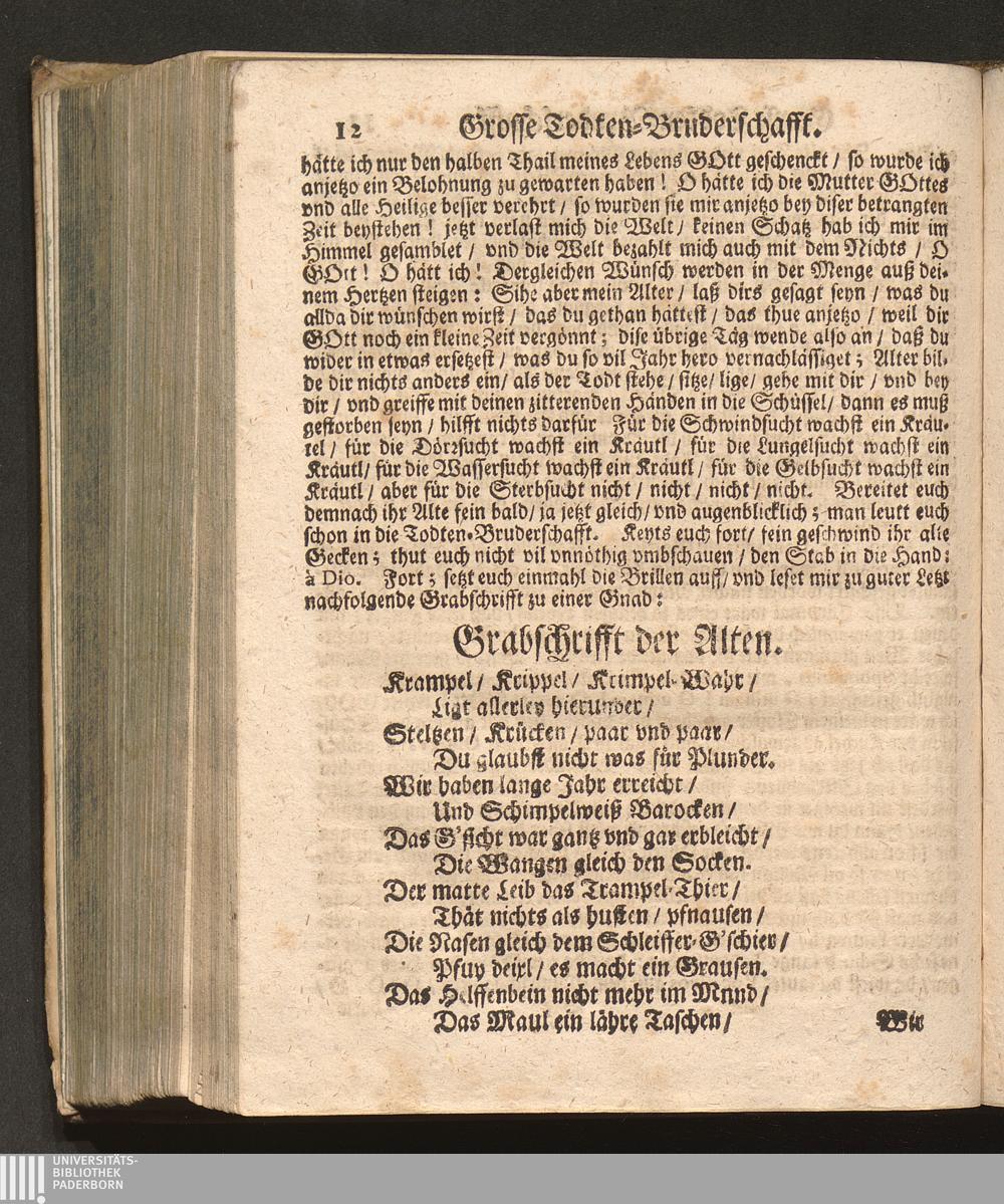 Grosse Todten-Bruderschafft/ Das ist: Ein kurtzer Entwurff Deß Sterblichen Lebens / Zusammen gesetzt Durch P. Abraham, Augustiner Baarfüsser/ Kayserlicher Prediger/ vnd dazumahl Prior/ [et]c.