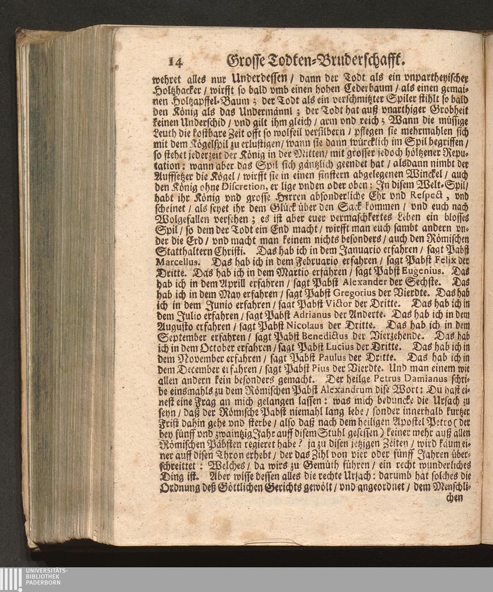 Grosse Todten-Bruderschafft/ Das ist: Ein kurtzer Entwurff Deß Sterblichen Lebens / Zusammen gesetzt Durch P. Abraham, Augustiner Baarfüsser/ Kayserlicher Prediger/ vnd dazumahl Prior/ [et]c.