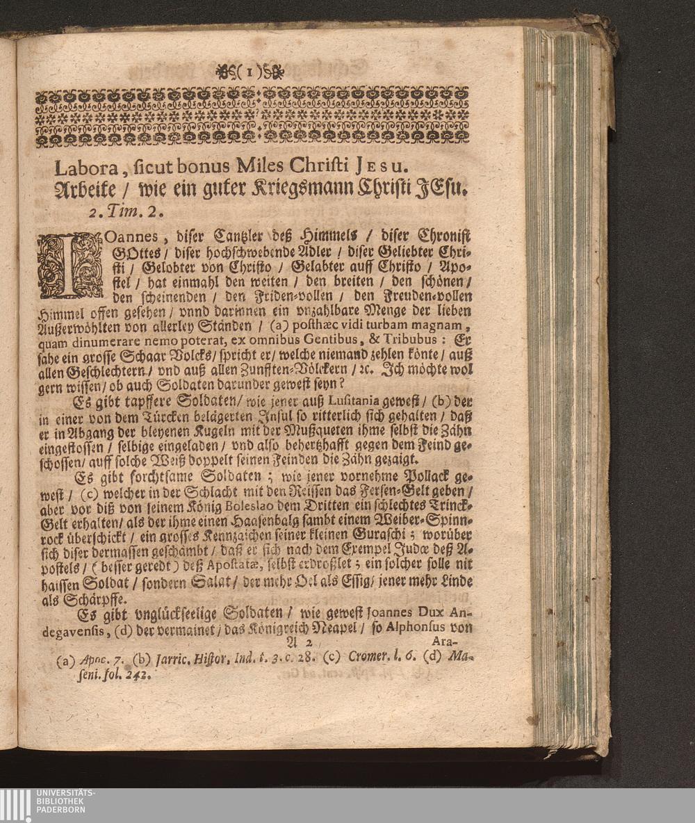 Soldaten-Glory/ Das ist: Von dem heiligen Ritter Und Haylsamen Vorbitter Georgio Schuldige Lob-Red : Welche An seinem Jährlichen Fest-Tag in dem Freysinger-Hof mitten in der Kayserlichen Residentz-Statt Wienn/ vor einem Volckreichen Auditorio, vnder dem freyen Himmel/ hoffentlich aber nicht im Lufft gesagt worden/ Und nunmehr in Truck verfertiget / Durch P. Fr. Abraham à S. Clara, Augustiner Baarfüsser/ [et]c.