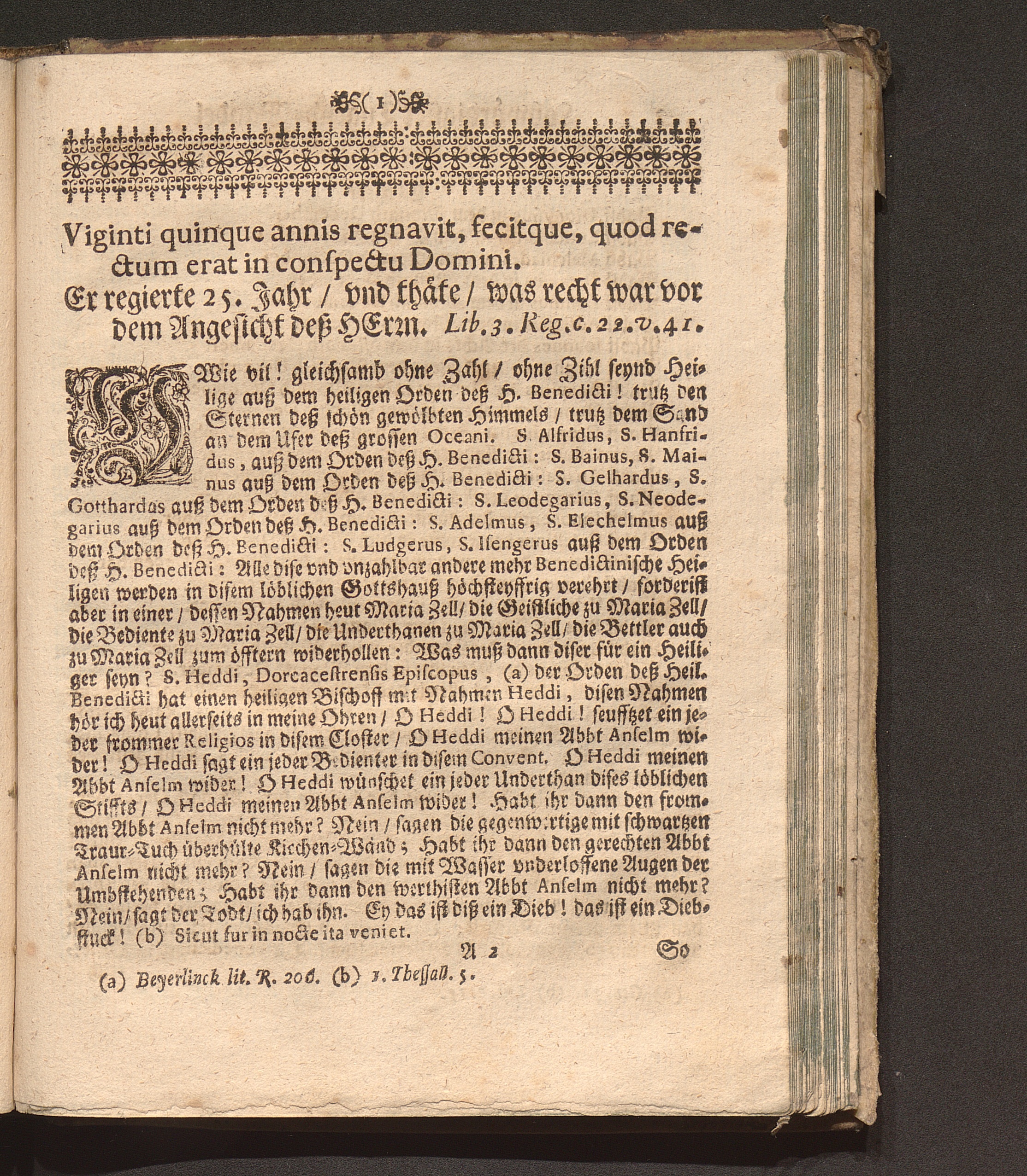 Zeugnuß vnd Verzeichnuß Eines Lobwürdigsten Tugend-Wandels/ So Jn der traurigen Leich-Besingnuß deß Weyland verstorbnen Herrn Abbts Anselm/ Zu Maria Zell in Oesterreich vnder der Ennß in einer schuldigsten Lob-Red vorgestellt/ Und Bey einer grossen Anzahl der versambleten Zuhörer gehalten worden / Durch P. Fr. Abraham à S. Clara, Augustiner Baarfüsser/ [et]c.