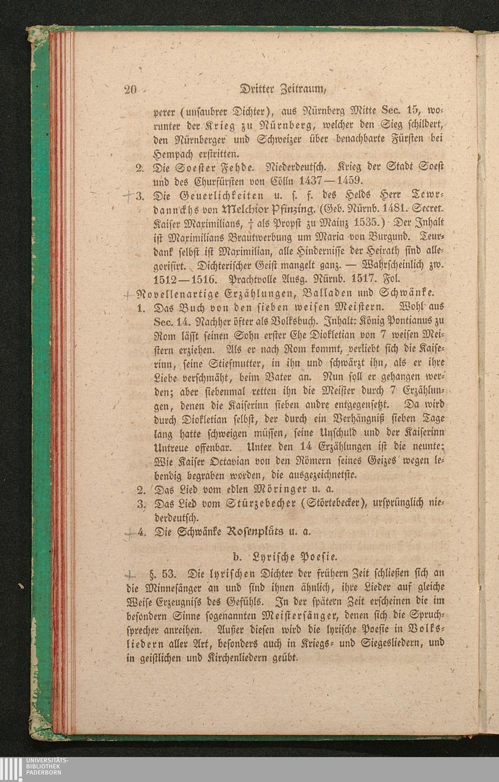 b. Lyrische Poesie. Meistersänger. (Dichter nach Art der frühen Periode, spätere[...]