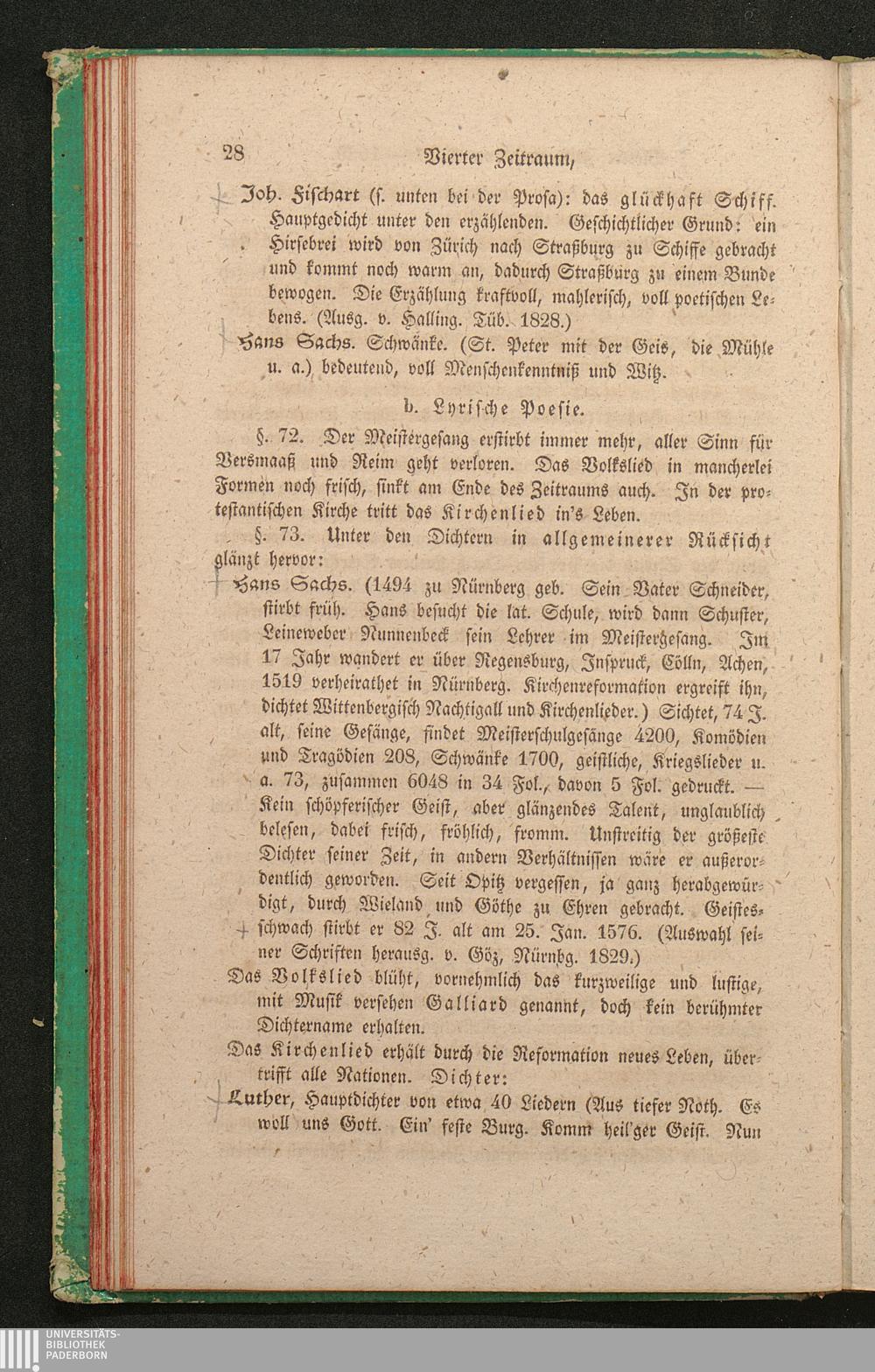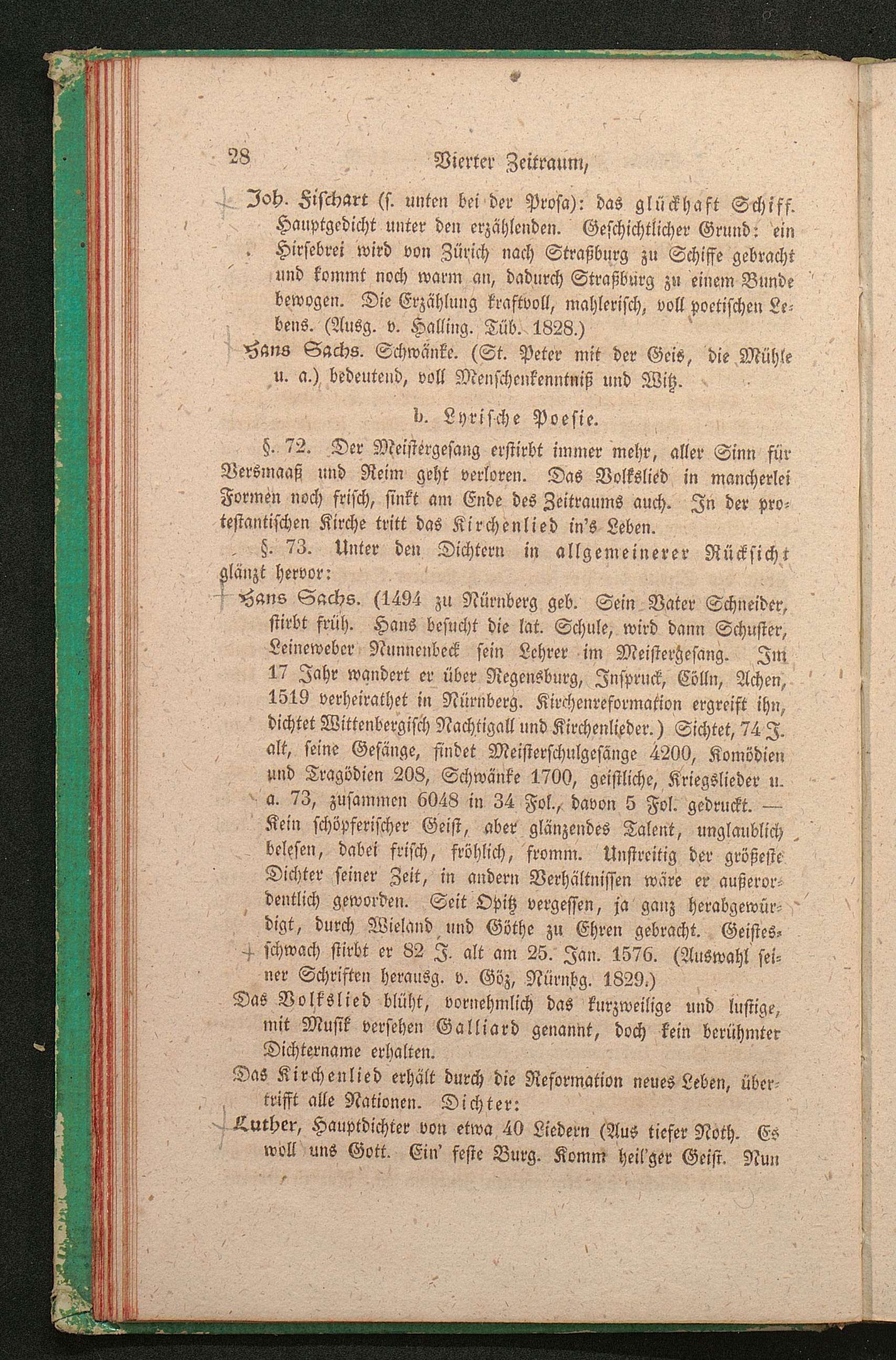 b. Lyrische Poesie. (Hans Sachs, Volkslied, Kirchenlied: Luther, Speratus, Decius[...]