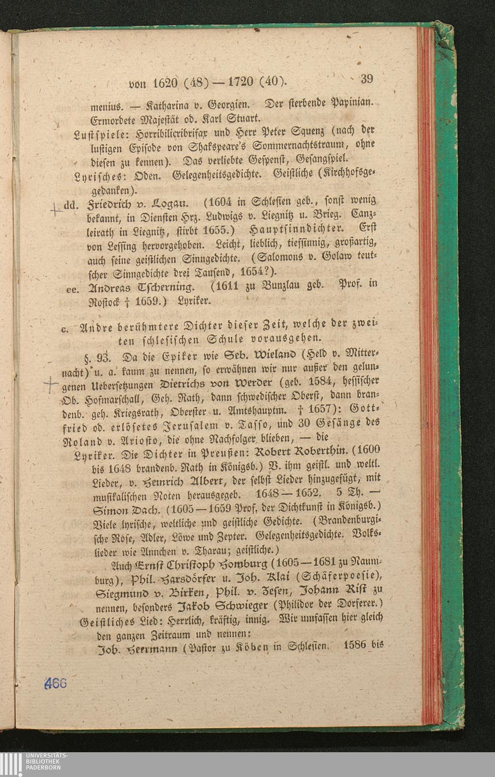 c. Andre Dichter, welche der zweiten schlesischen Schule vorausgehen. Uebersetzer;[...]