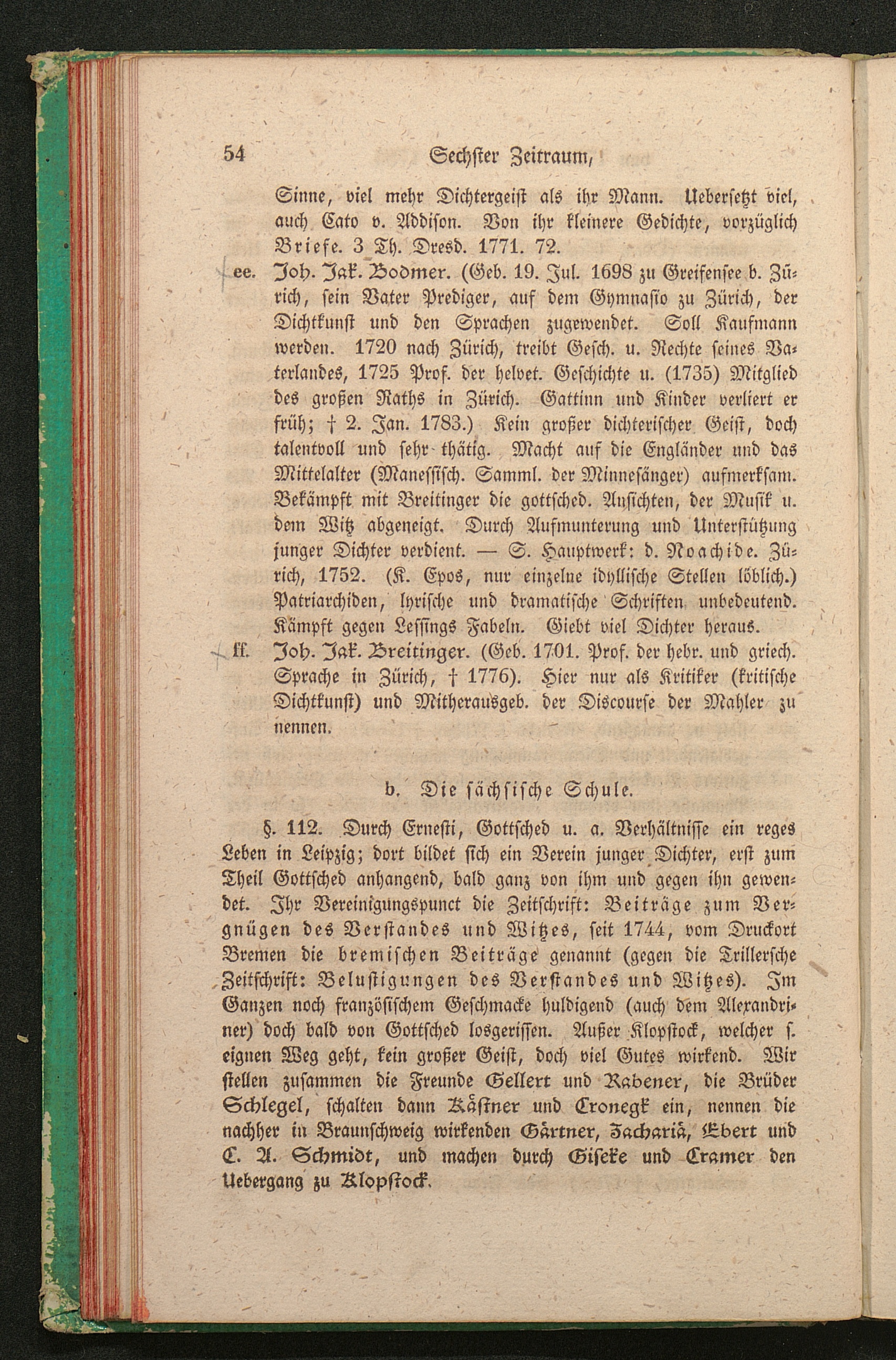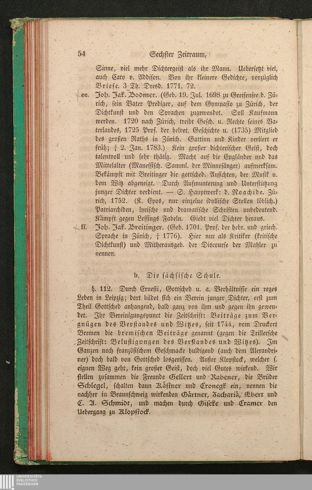 b. Die sächsische Schule. (Gellert, Rabener, Brüd. Schlegel, Kästner u. v. Cronegk;[...]