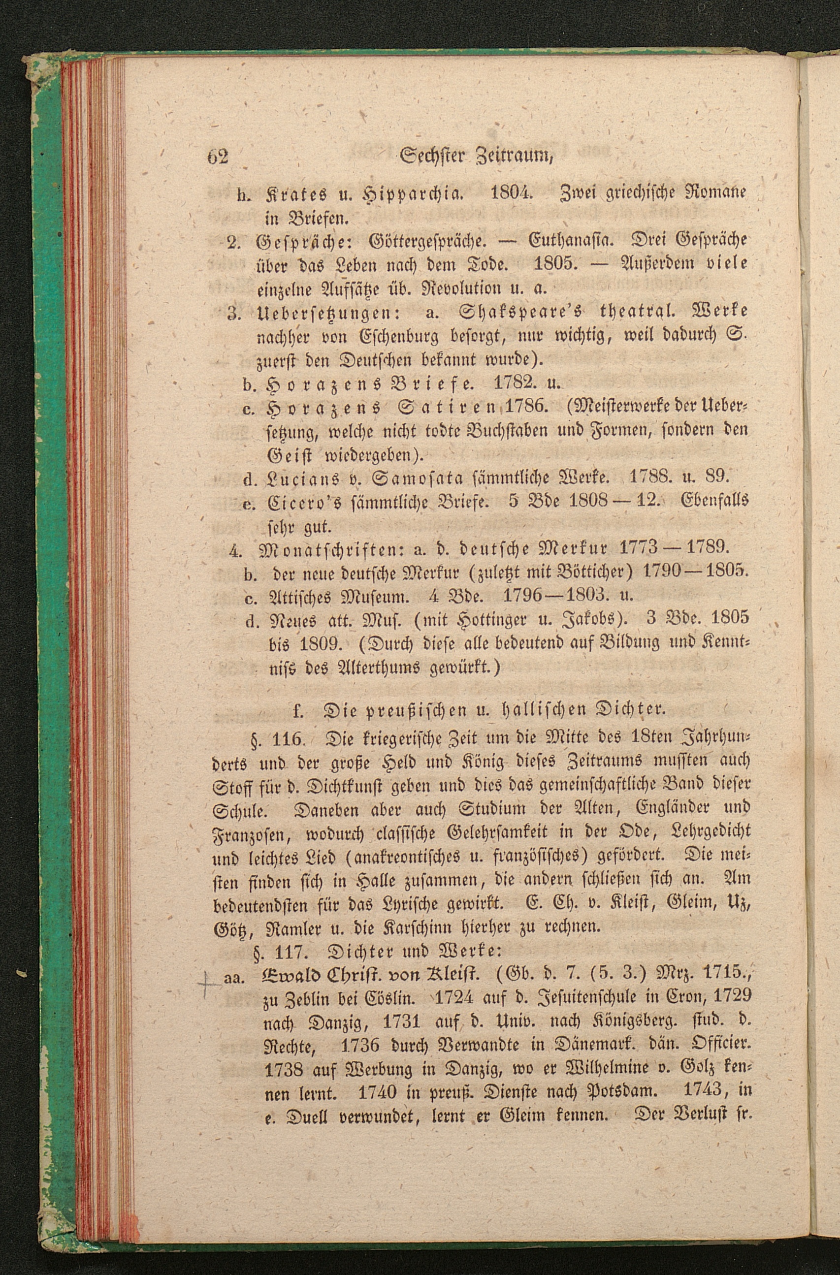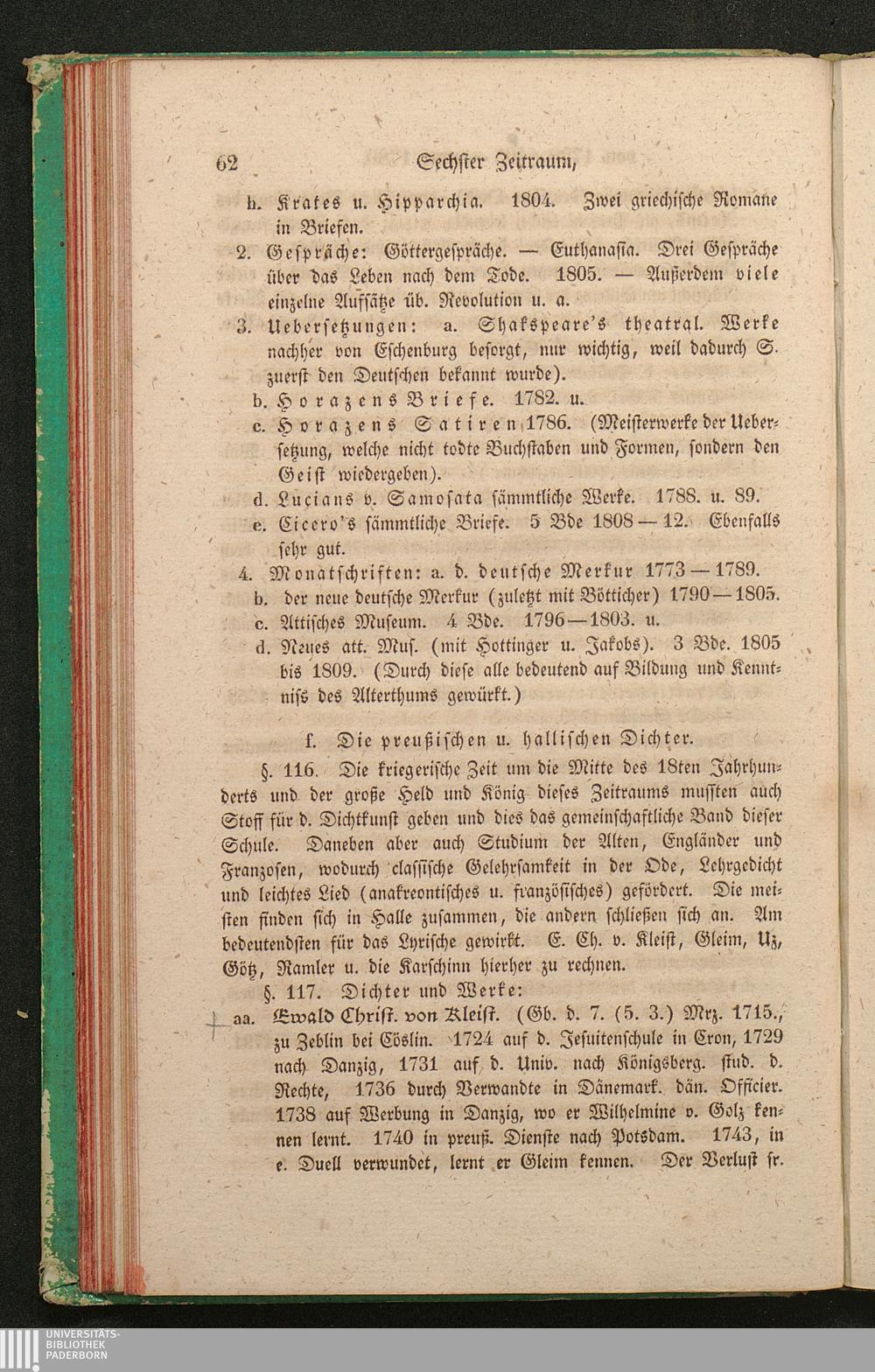 f. Die preußischen und hallischen Dichter. (von Kleist, Gleim, Uz, Götz, Ramler,[...]