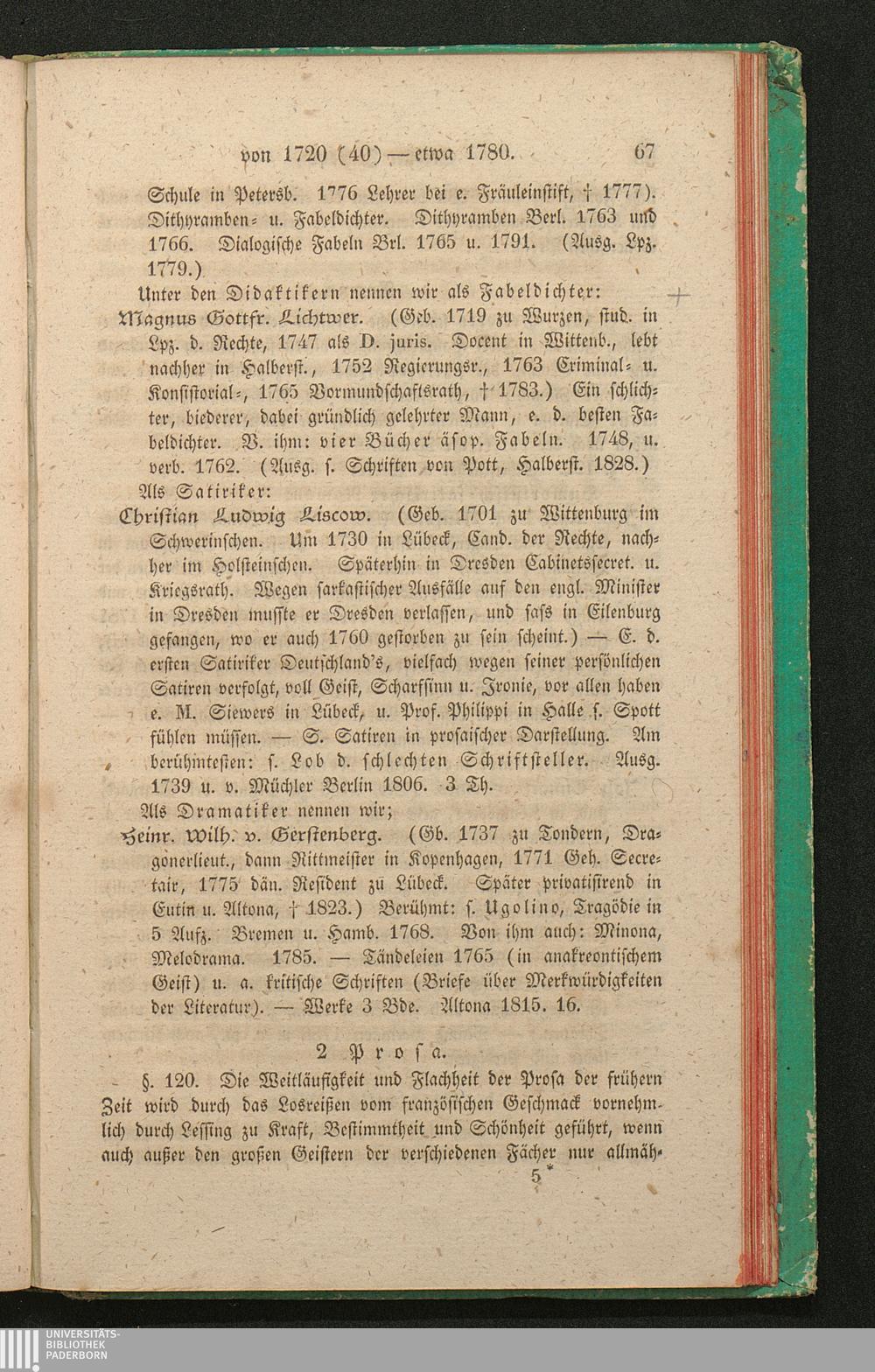 Sechste Periode. V. 1720 - 1780.