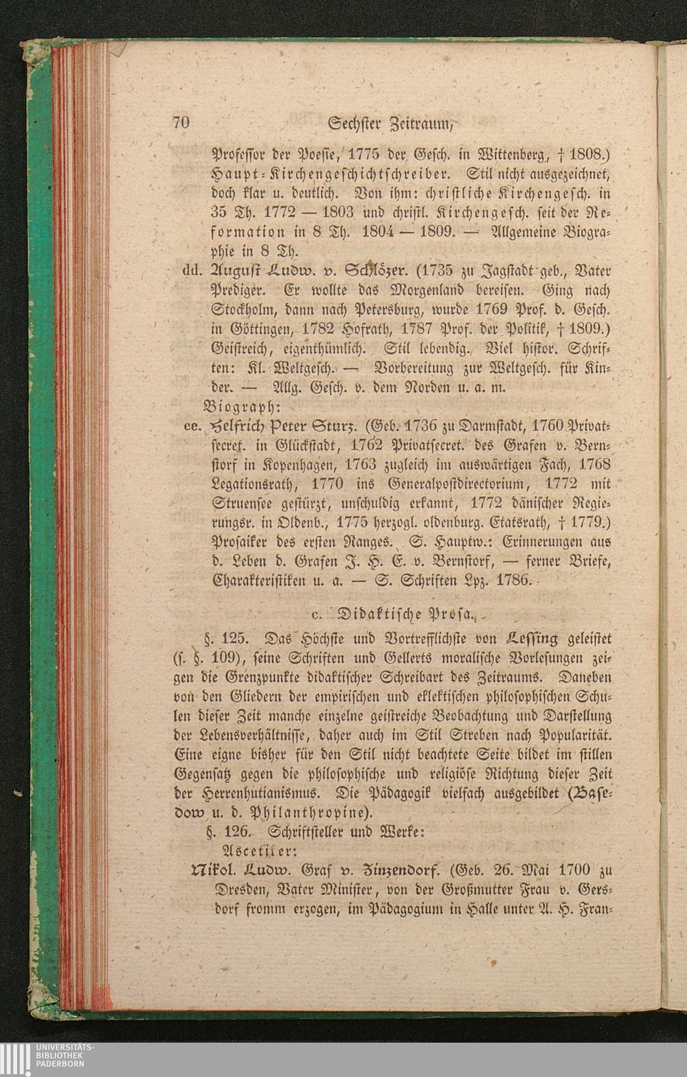 c. Didaktische Prosa. Ascetiker (v. Zinzendorf), Popularphilosophen (Sulzer, Moses,[...]