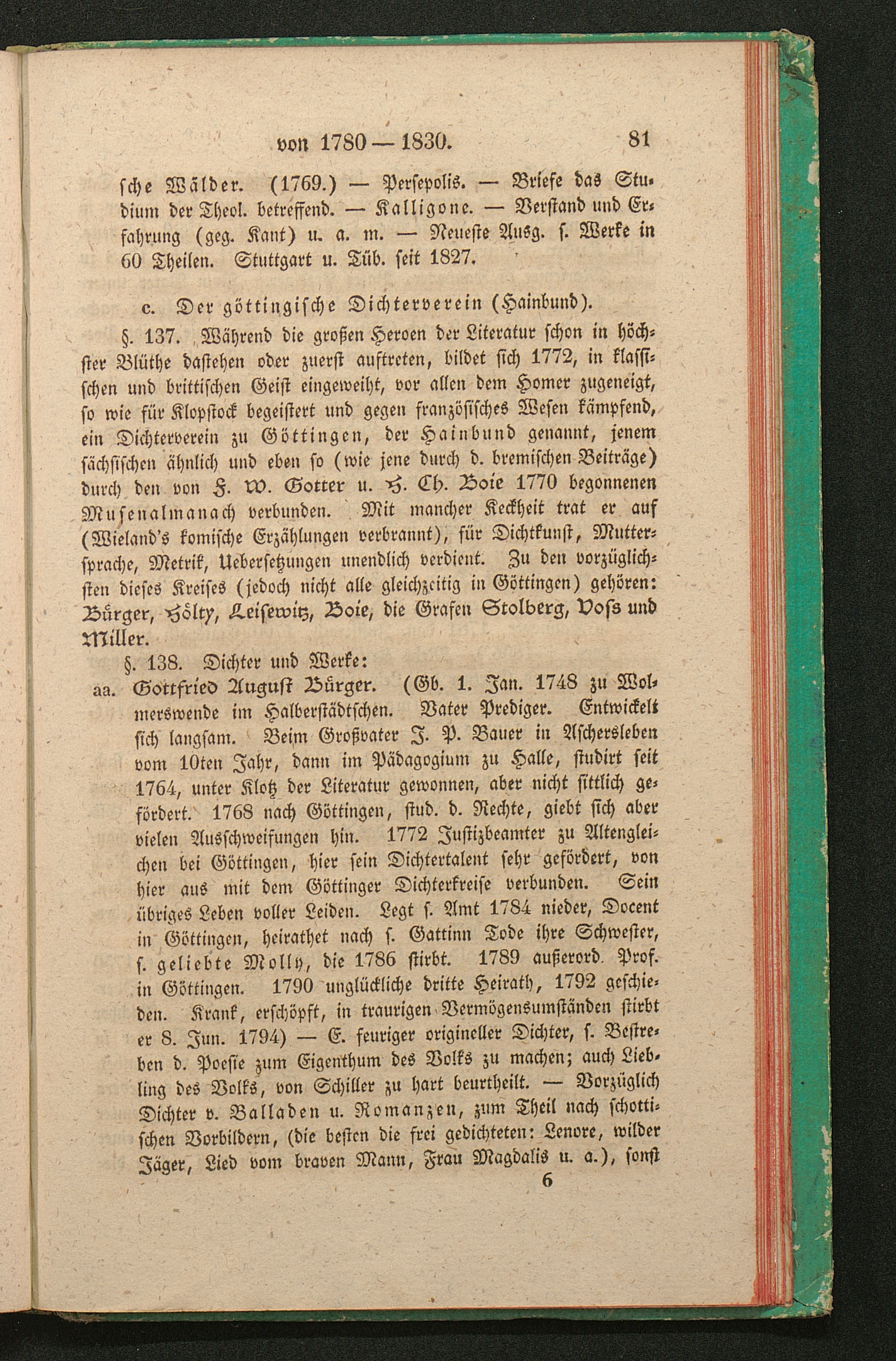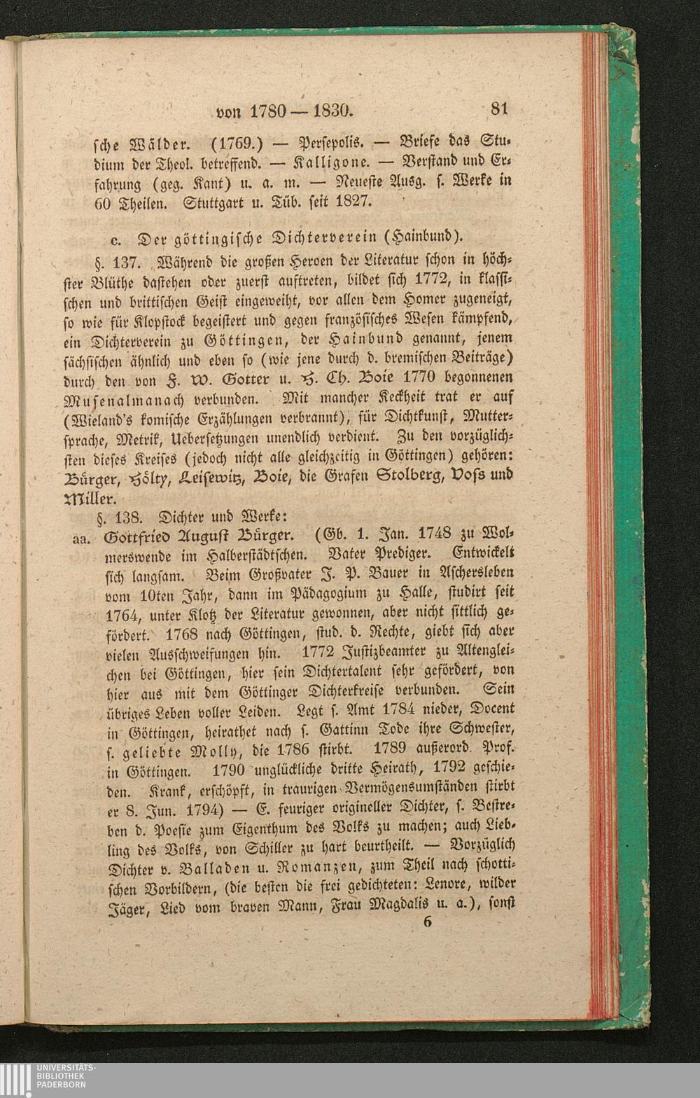 c. Der göttingische Dichterverein (Hainbund). (Bürger, Hölty, Leisewitz, Boie, Grafen[...]