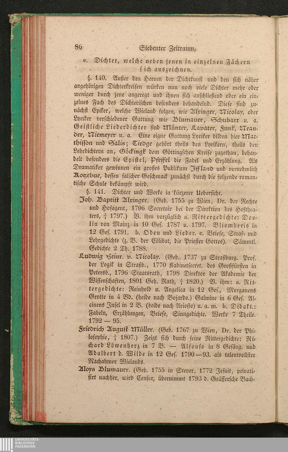 e. Dichter, welche neben diesen in einzelnen Fächern sich auszeichnen. (Alxinger,[...]