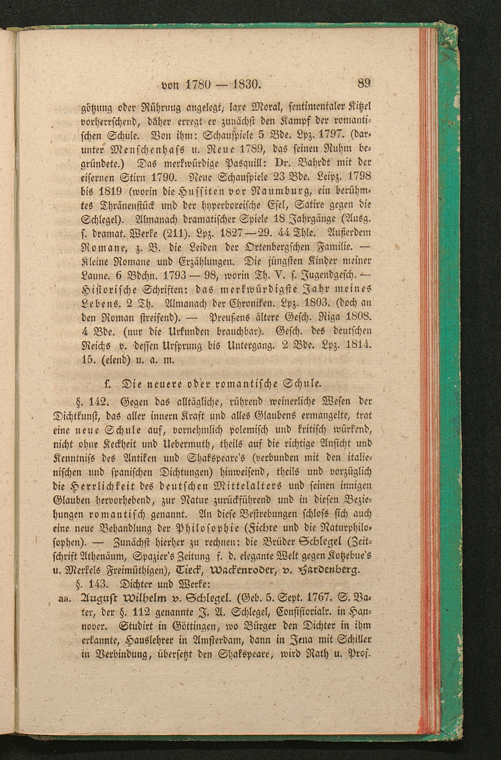 f. Die neuere oder romantische Schule. (Gebrüder Schlegel, Tieck, Wackenroder, v.[...]