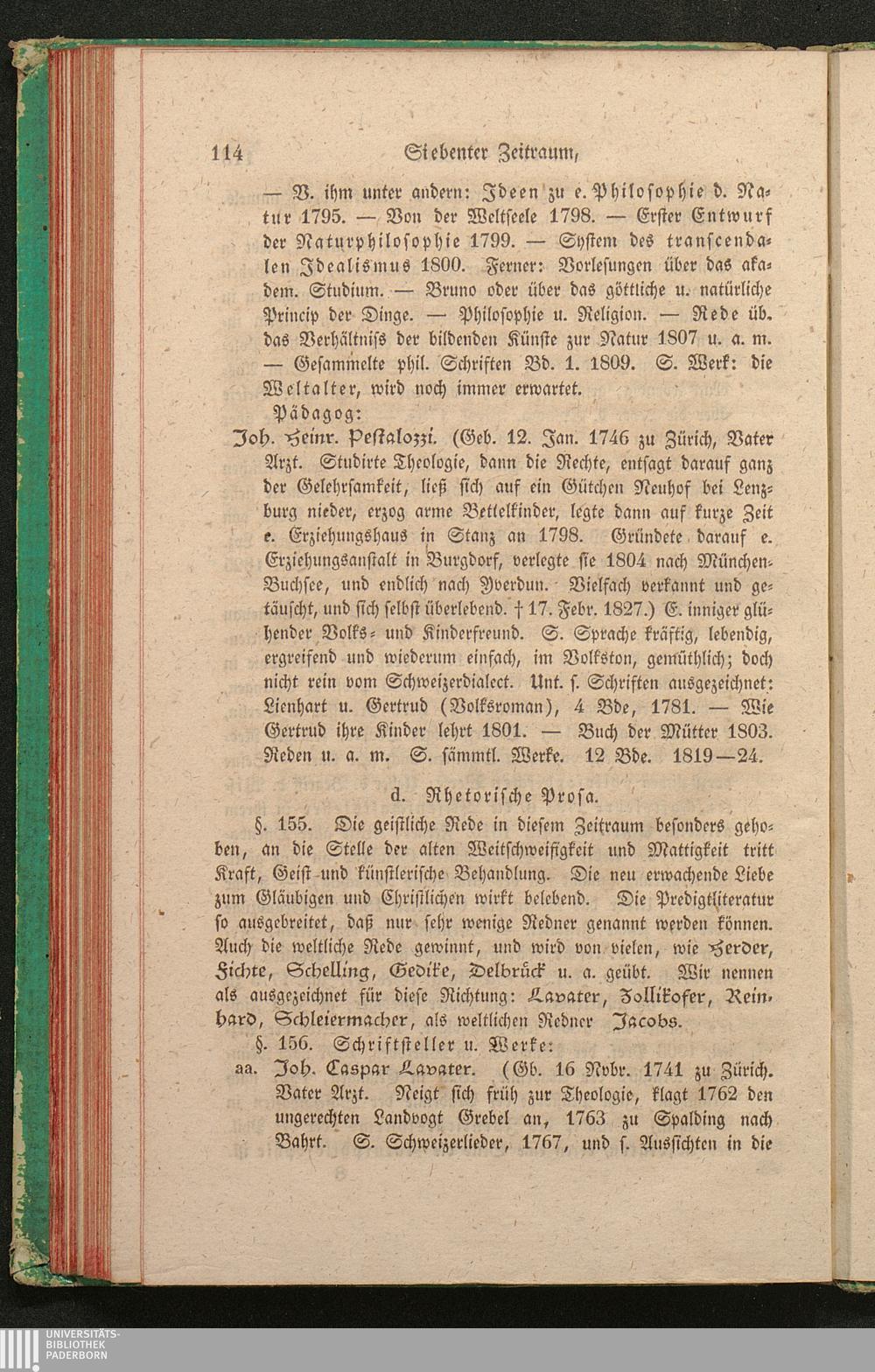 d. Rhetorische Prosa. Schriftsteller und Werke. (Lavater, Zollikofer, Reinhard, Schleiermacher,[...]