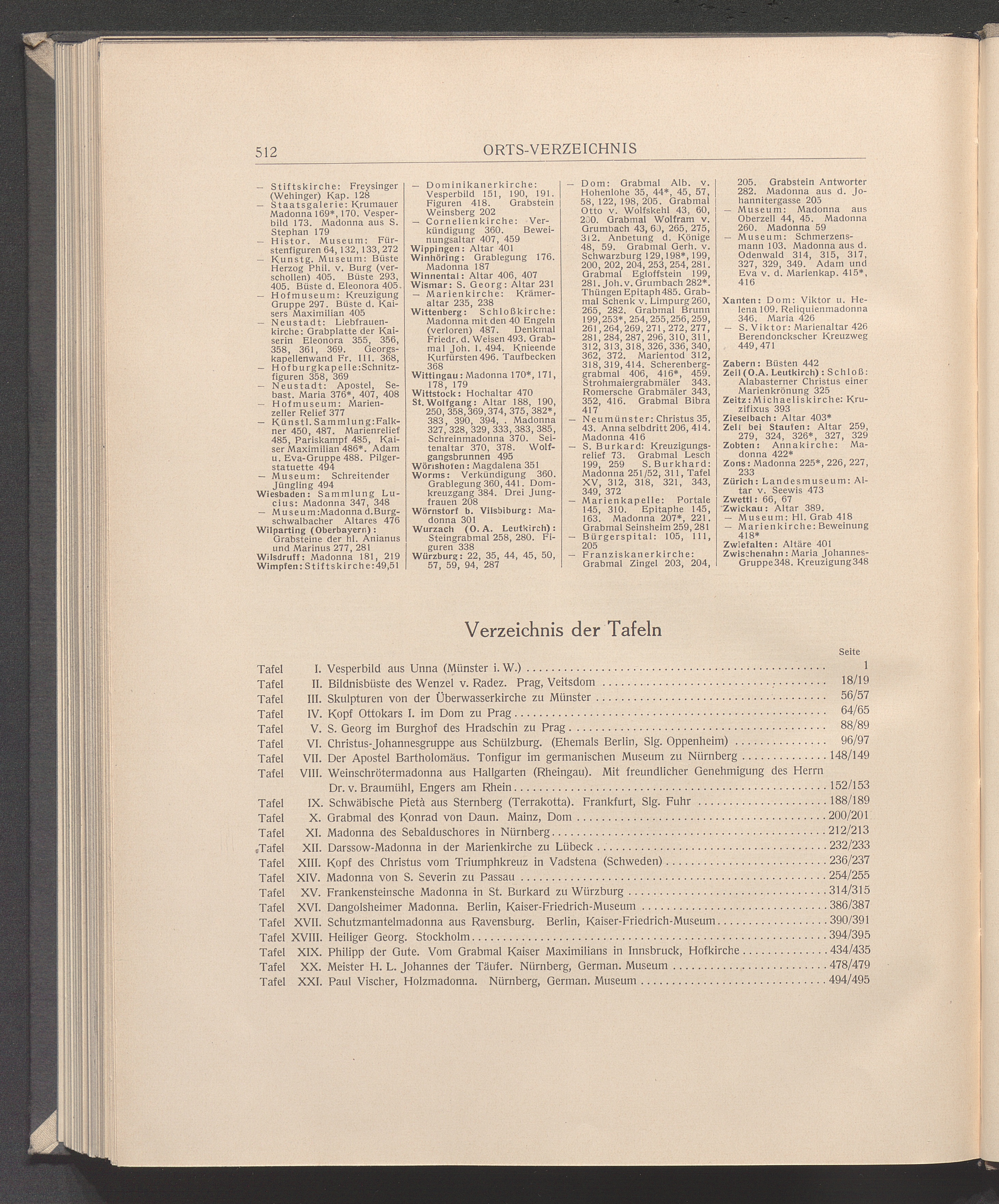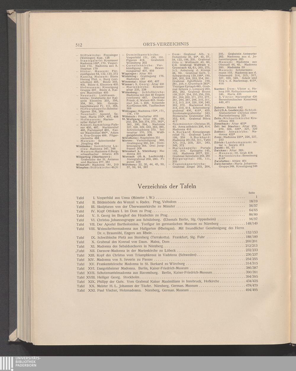Verzeichnis der Tafeln