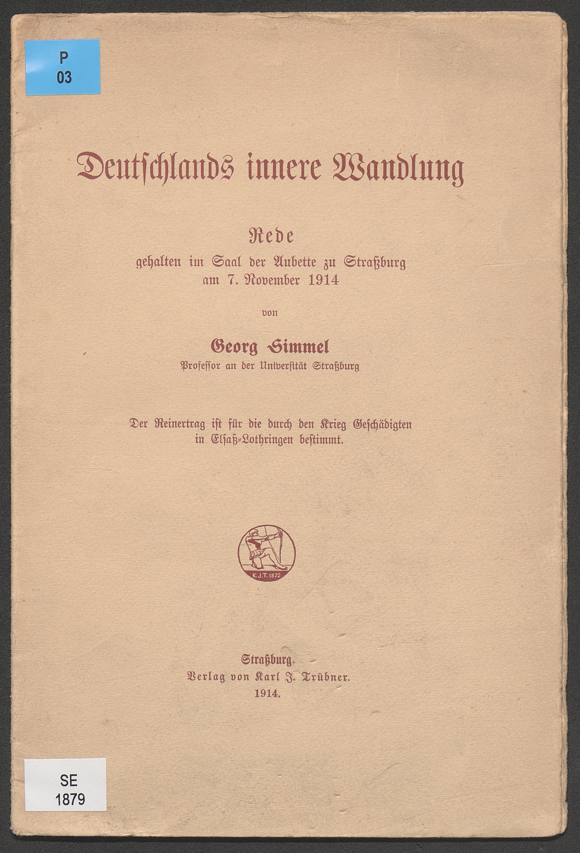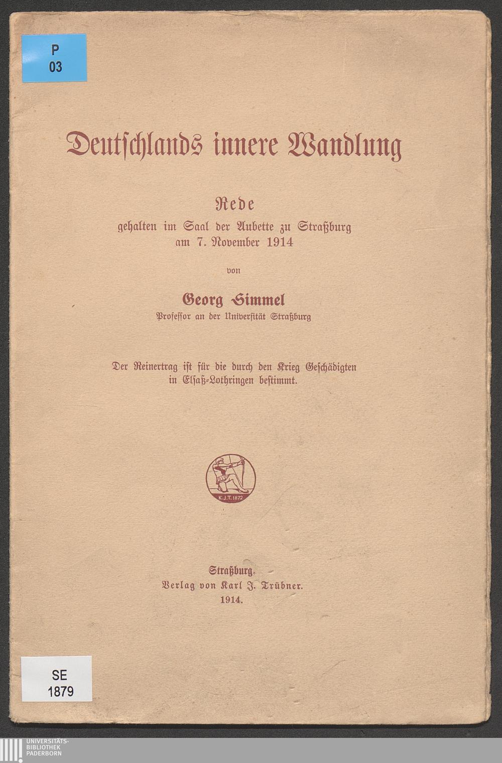 Deutschlands innere Wandlung : Rede gehalten im Saal der Aubette zu Strassburg am 7. November 1914 / von Georg Simmel