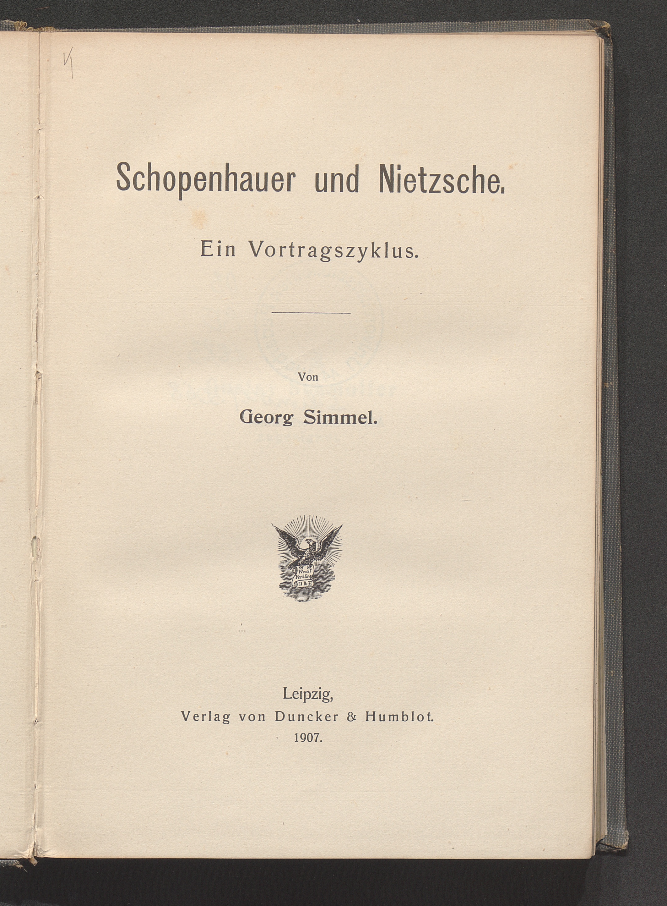 Schopenhauer und Nietzsche : ein Vortragszyklus / von Georg Simmel
