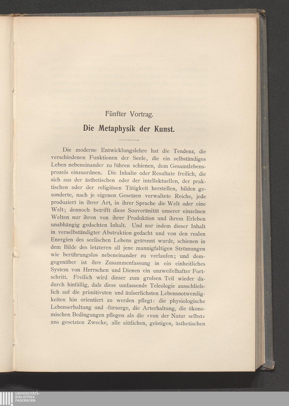 Der definitive Wert des Lebens und das Christentum. Schopenhauers Willensphilosophie als Ausdruck der inneren Lage der Gegenwart. Verlust des absoluten Lebenszweckes und weiterbestehendes Bedürfnis nach ihm. Nietzsches Ersatz des absoluten durch den relativen Zweck der Steigerung des Lebensprozesses selbst: der »Übermensch« als Formel der Menschheitsentwicklung über jedes gegebene Stadium hinaus. Das Verhältnis beider Lehren als Ergebnis dieser Grunddifferenz bei gleichem Ausgangspunkt.