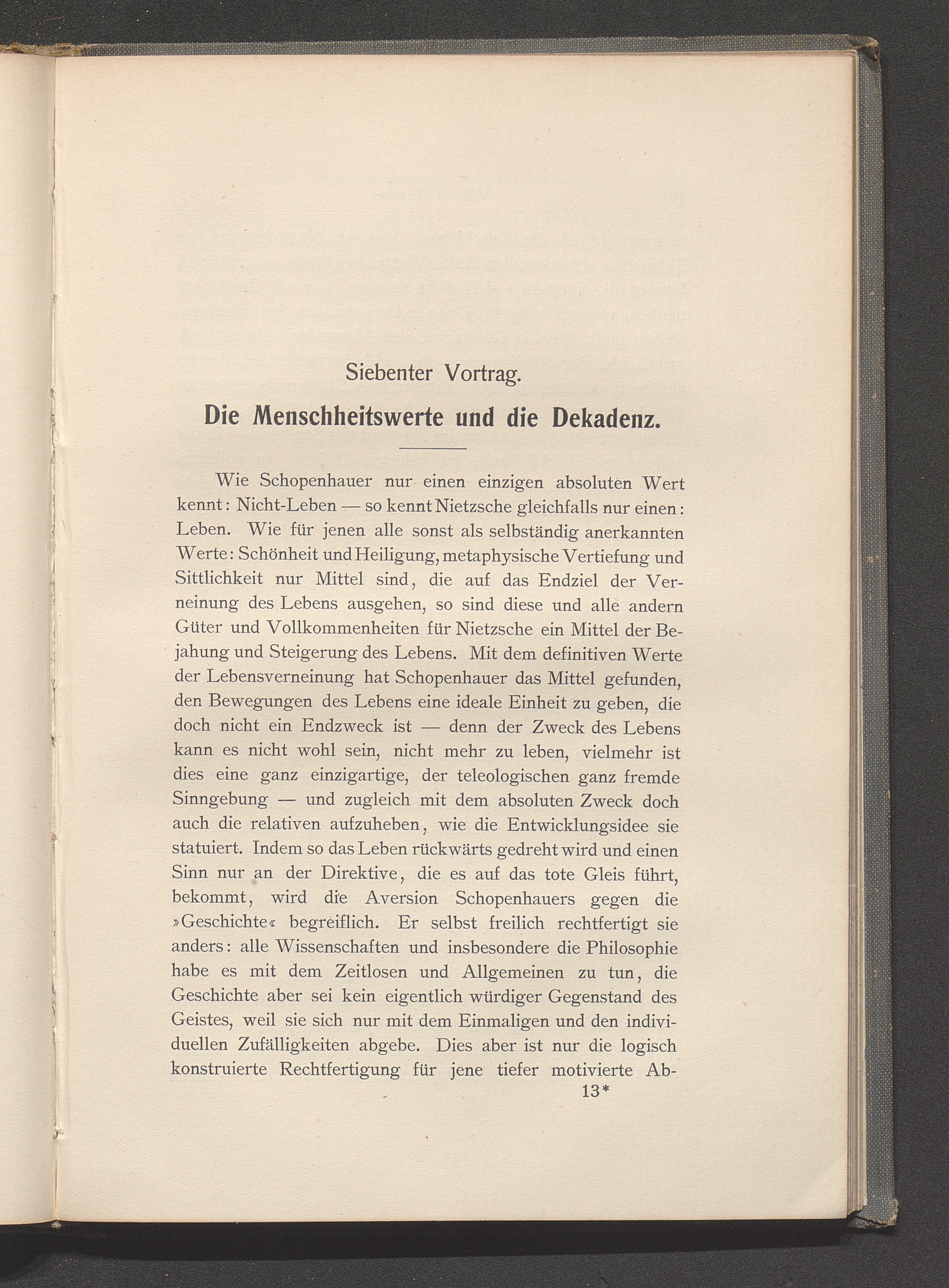 Der definitive Wert des Lebens und das Christentum. Schopenhauers Willensphilosophie als Ausdruck der inneren Lage der Gegenwart. Verlust des absoluten Lebenszweckes und weiterbestehendes Bedürfnis nach ihm. Nietzsches Ersatz des absoluten durch den relativen Zweck der Steigerung des Lebensprozesses selbst: der »Übermensch« als Formel der Menschheitsentwicklung über jedes gegebene Stadium hinaus. Das Verhältnis beider Lehren als Ergebnis dieser Grunddifferenz bei gleichem Ausgangspunkt.