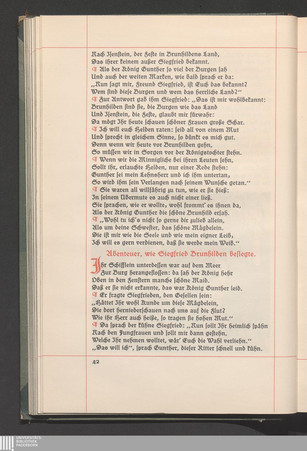 Abenteuer, wie Siegfried Brunhilden besiegte.