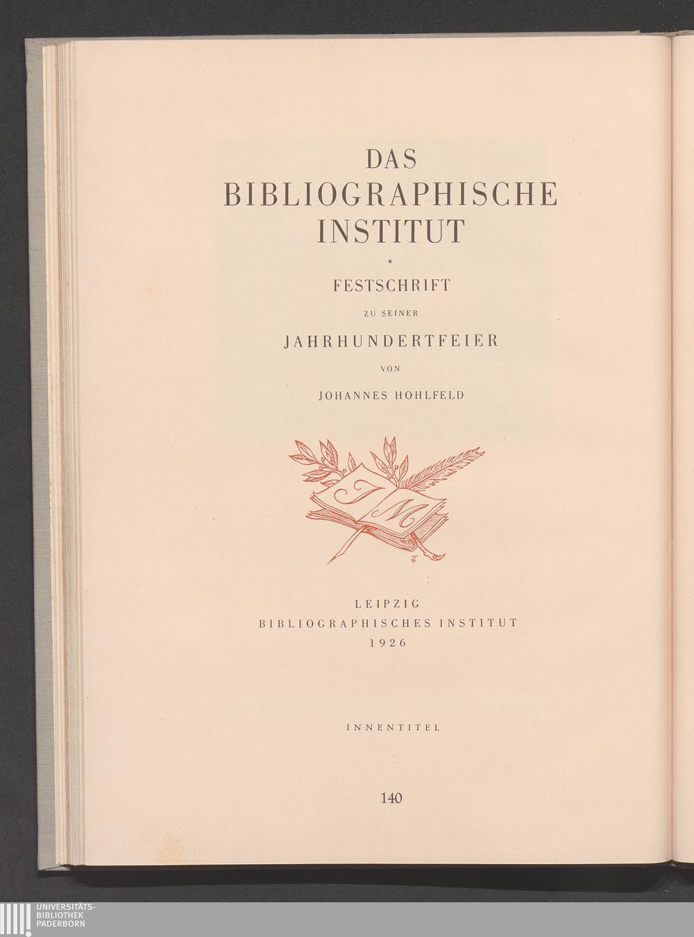 Festschrift des Bibliographischen Instituts zu Leipzig, Innentitel