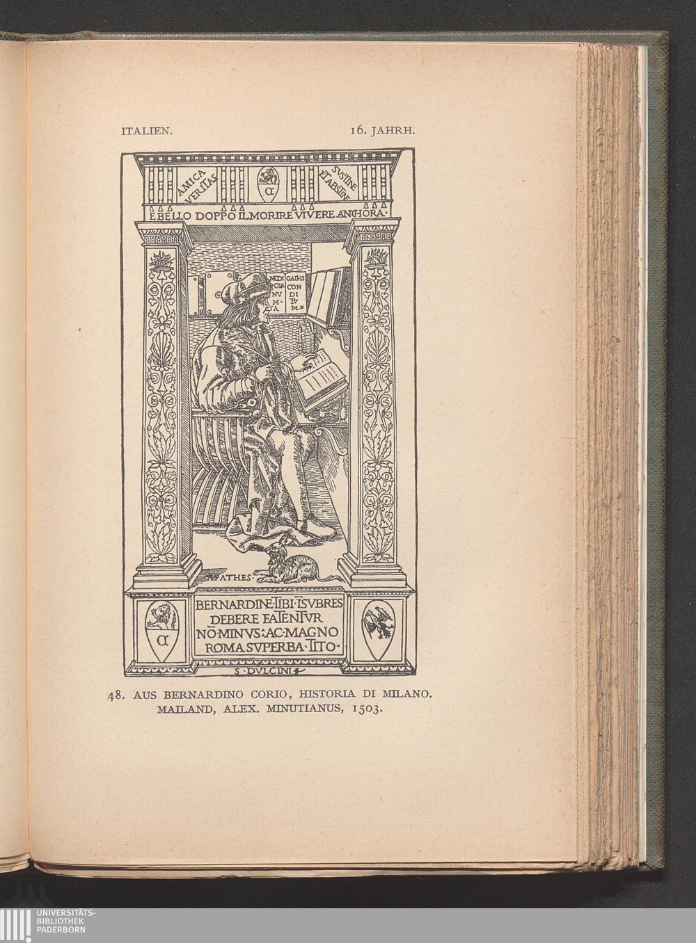 48. Aus Bernardino Corio, Historia di Milano. Mailand, Alexander Minutianus, 150[...]