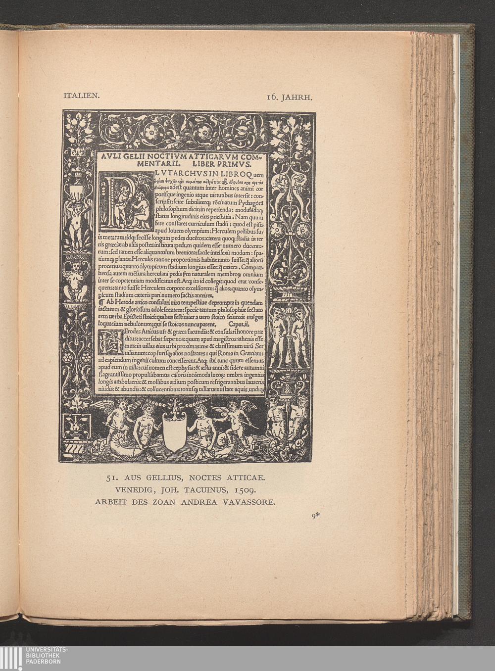 51. Aus Gellius, noctes Atticae. Venedig, Joh. Tacuinus, 1509. Arbeit des Zoan Andrea[...]