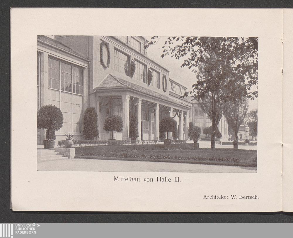 Mittelbau von Halle III. Architekt: W. Bertsch.