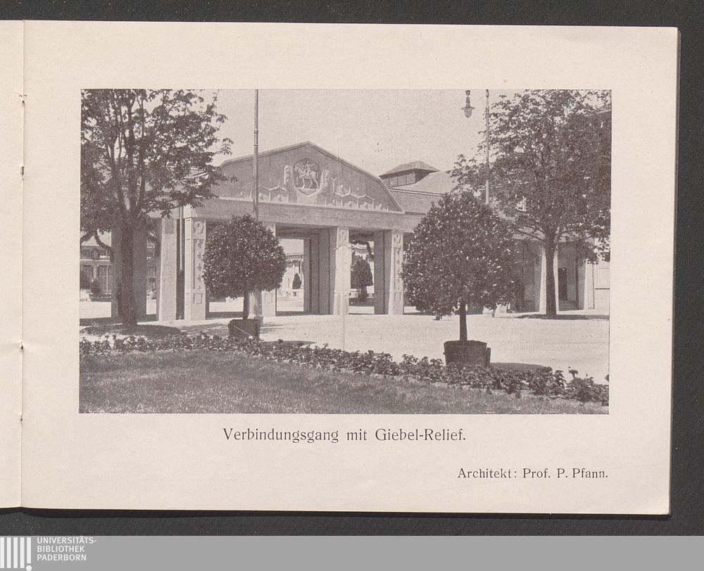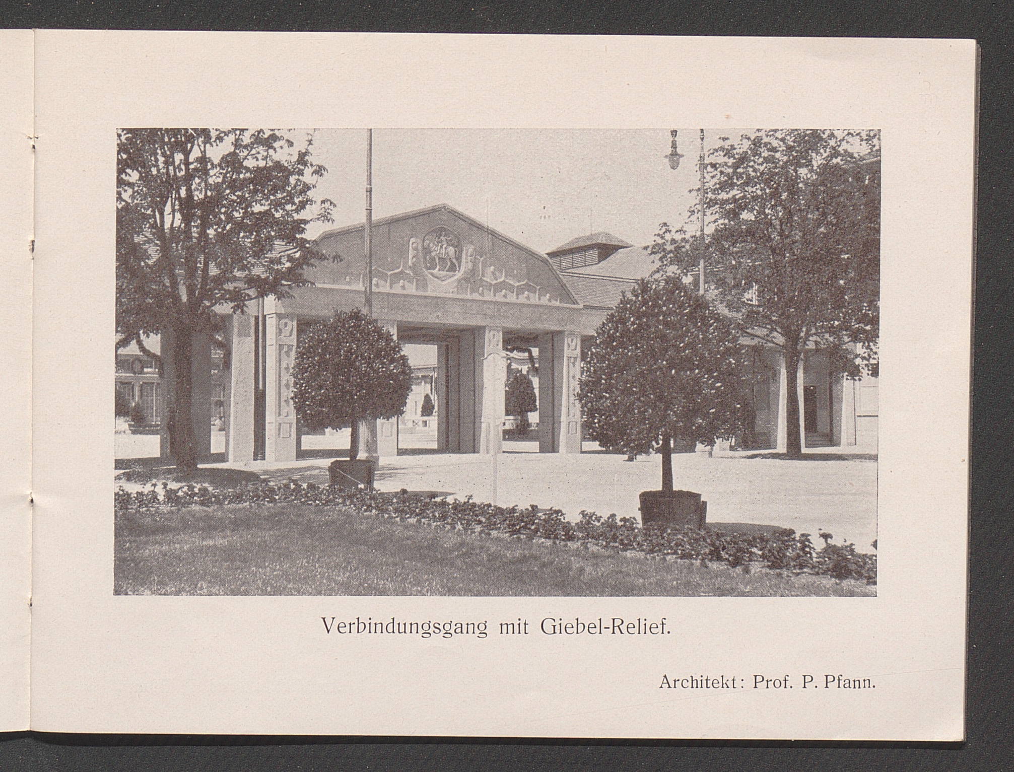 Verbindungsbau mit Giebel-Relief. Architekt: Prof. P. Pfann.