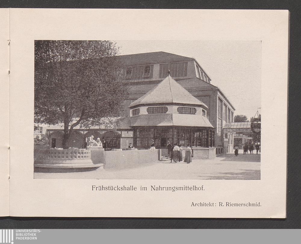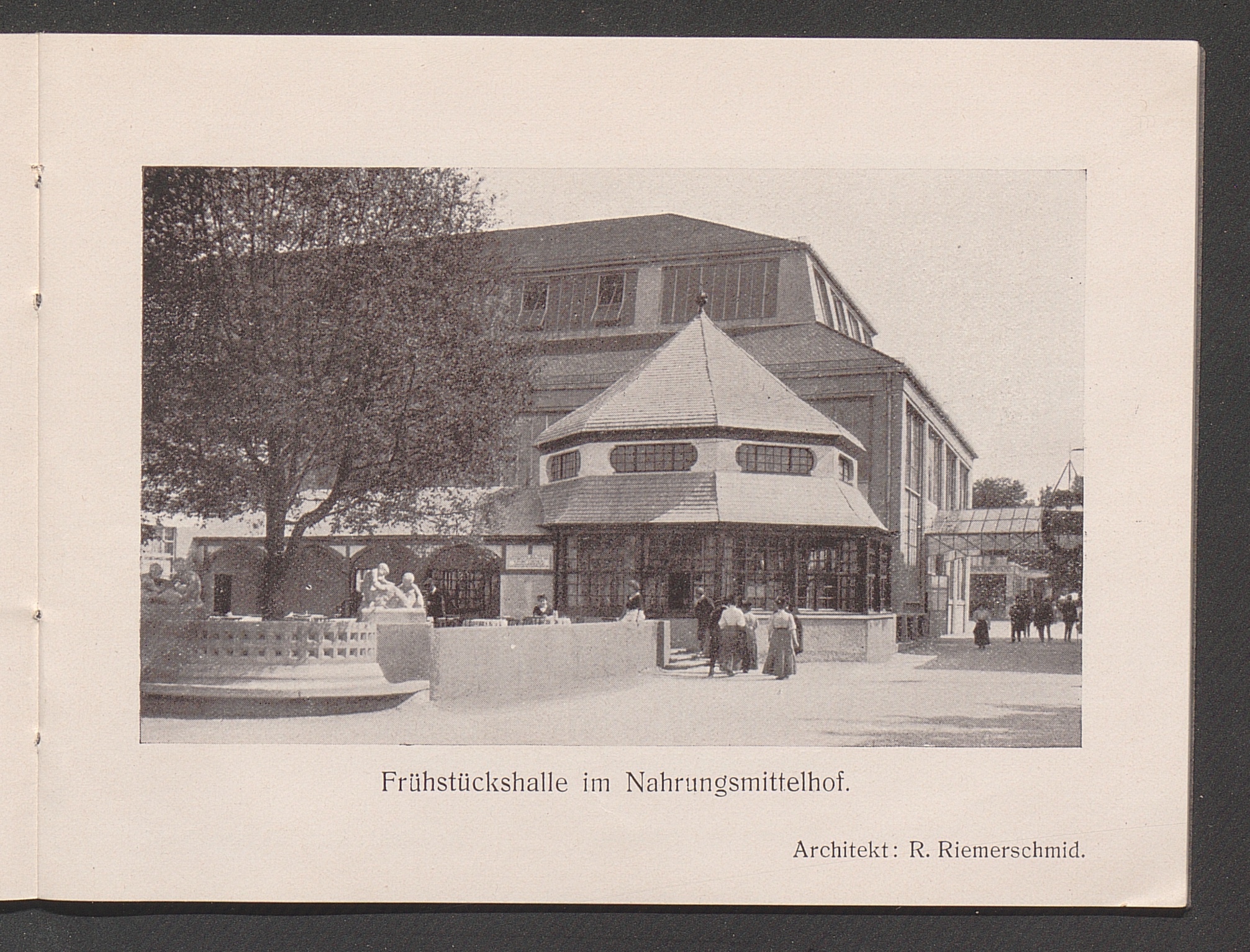 Frühstückshalle im Nahrungsmittelhof. Architekt: R. Riemerschmid.