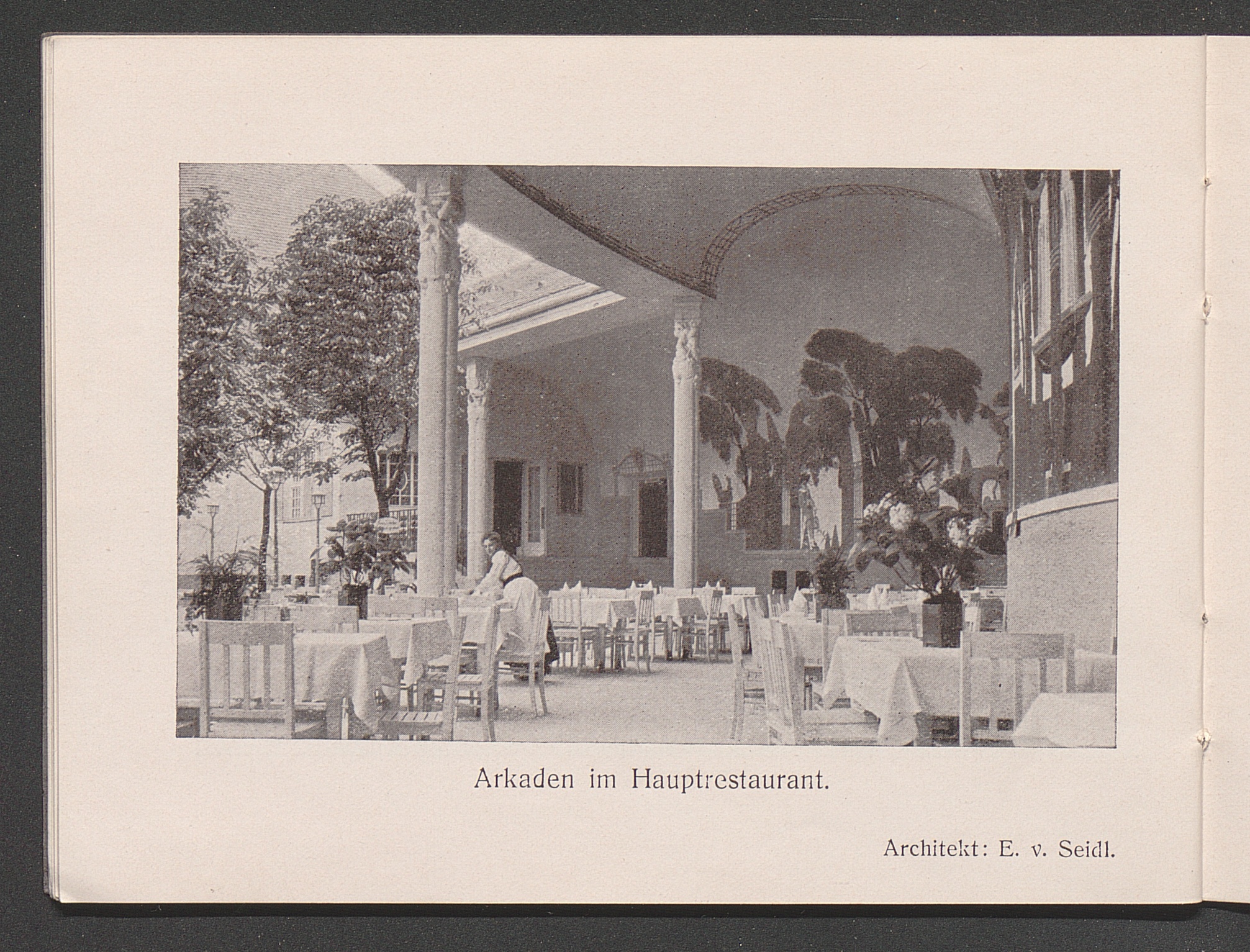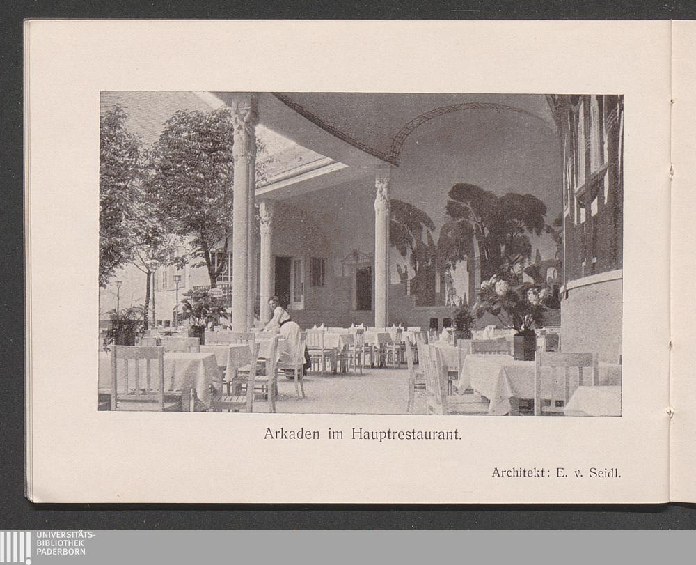 Arkaden im Hauptrestaurant. Architekt: E. v. Seidl.