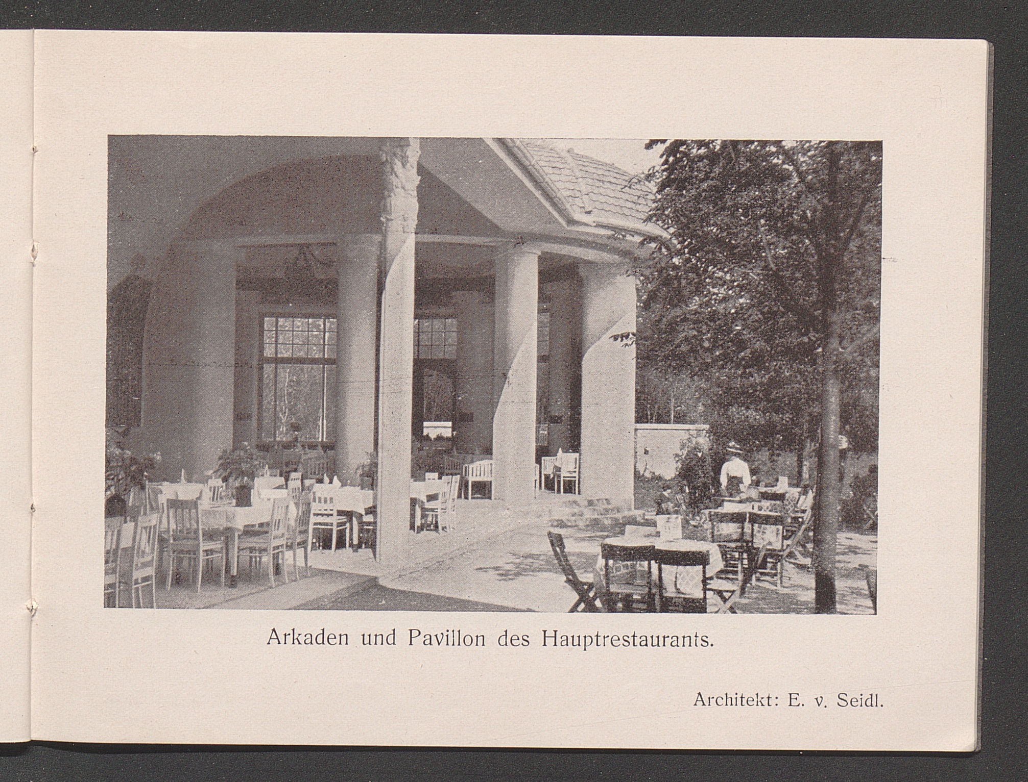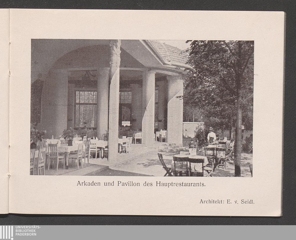 Arkaden und Pavillon des Hauptrestaurants. Architekt: E. v. Seidl.