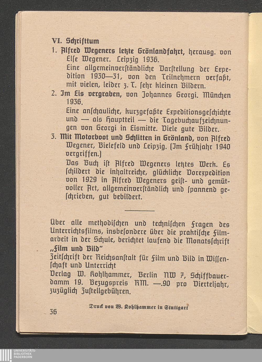 V. Ausführliche Beschreibung und Erläuterung des Films F 227 A „Deutsche Grönland-Expedition Alfred Wegner, I. Teil"