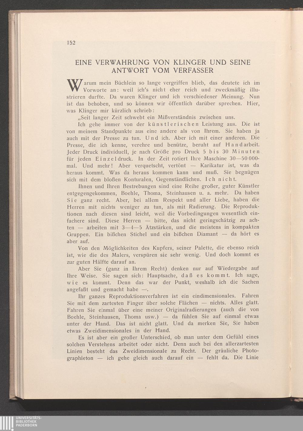 Eine Verwahrung Von Klinger Und Seine Antwort Vom Verfasser