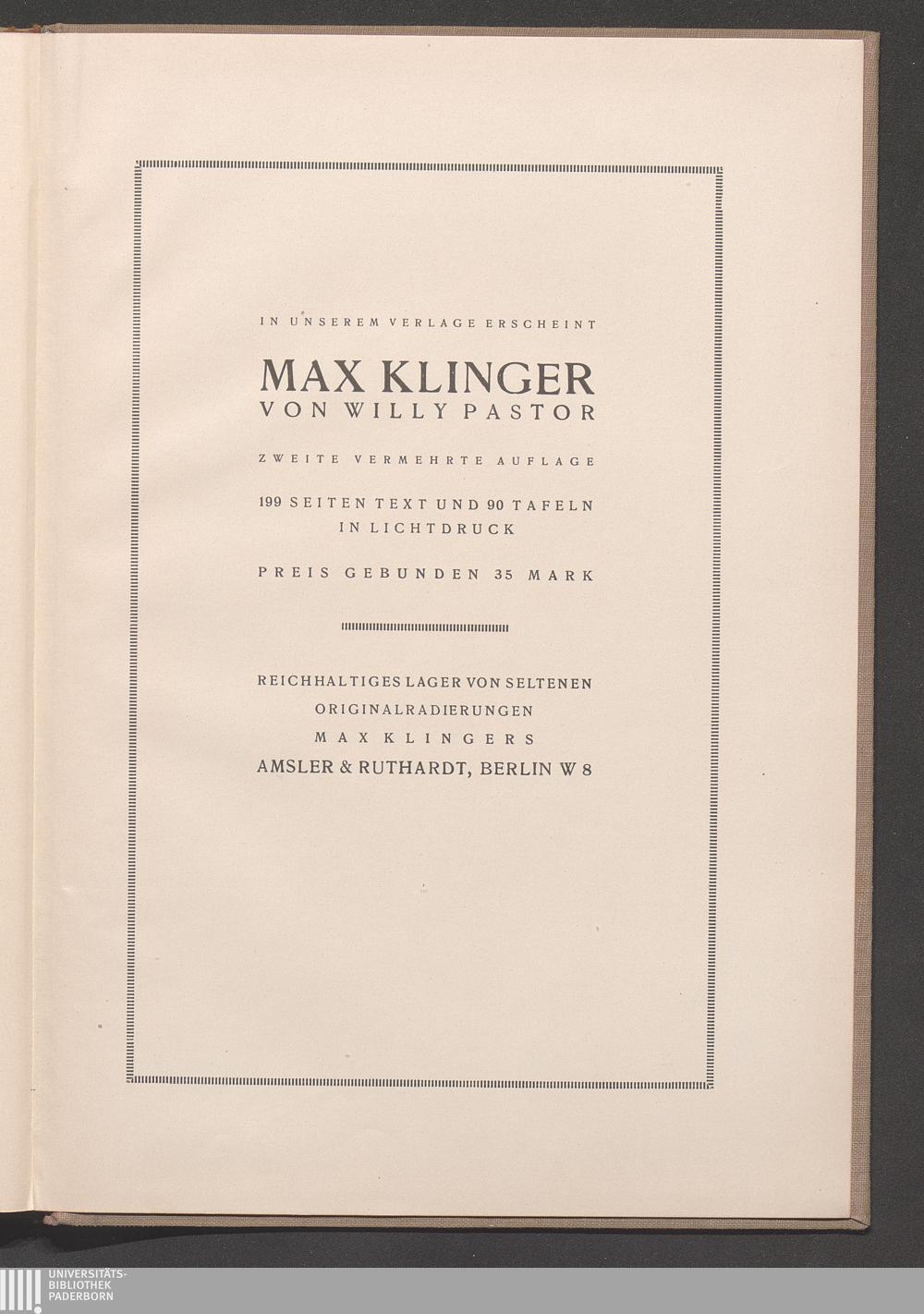 Max Klinger als Poet : mit einem Briefe Max Klingers, einem Nachruf von Ferdinand Avenarius und einem Beitrage von Hans W. Singer / Ferdinand Avenarius