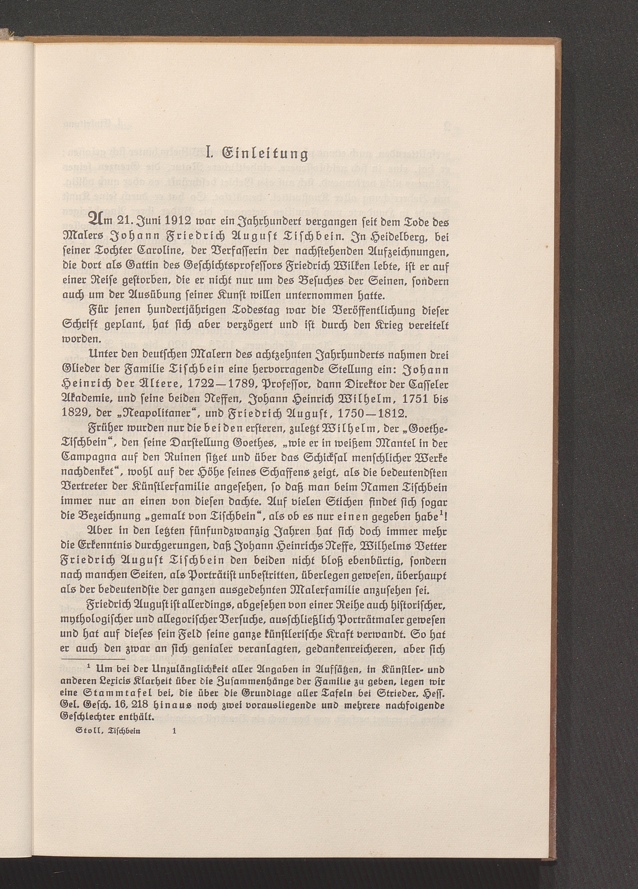 Der Maler Joh. Friedrich August Tischbein und seine Familie : ein Lebensbild nach den Aufzeichnungen seiner Tochter Caroline / von Adolf Stoll