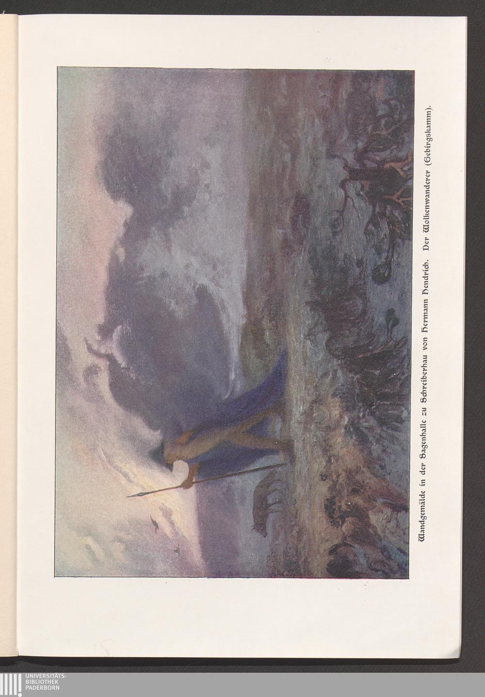 Die Sagenhalle des Riesengebirges (Schreiberhau) : der Mythus von Wotan-Rübezahl in Werken der bildenden Kunst / 8 Bilder von Hermann Hendrich. Rübezahl-Standbild von Hugo Schuchardt. Bauwerk von Paul Engler ; der schlafende Wotan / Standbild von Rudolf Maison. Erl. von Bruno Wille
