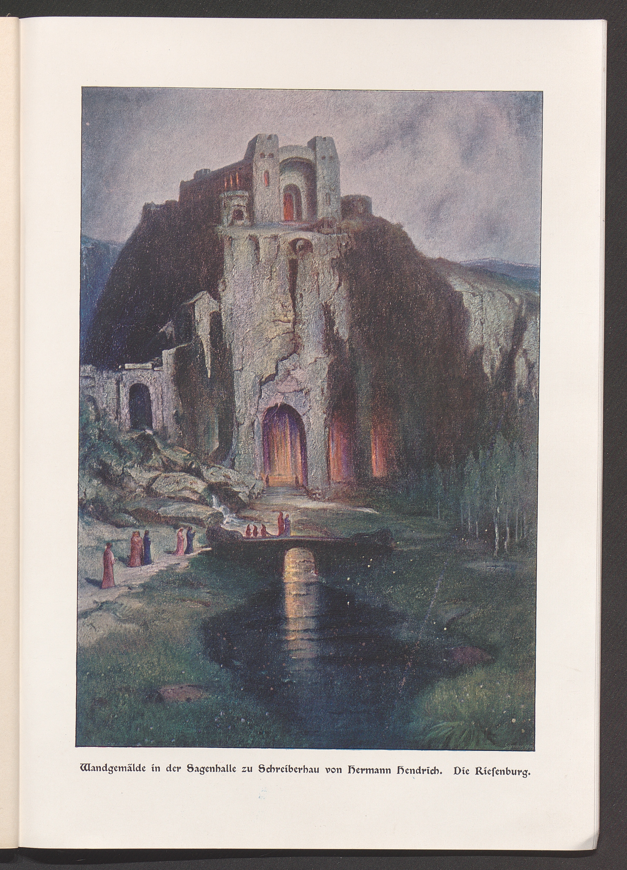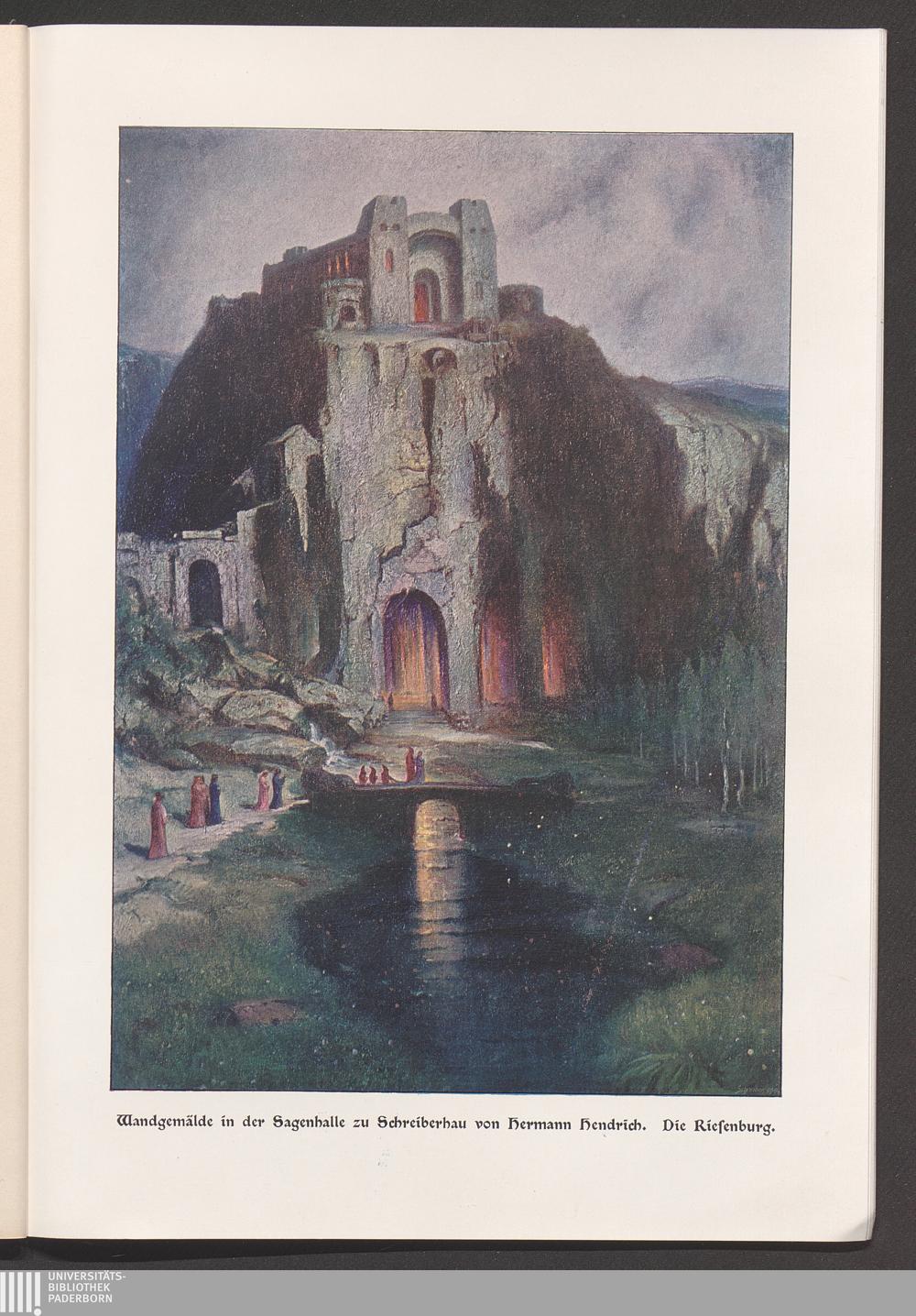 Die Sagenhalle des Riesengebirges (Schreiberhau) : der Mythus von Wotan-Rübezahl in Werken der bildenden Kunst / 8 Bilder von Hermann Hendrich. Rübezahl-Standbild von Hugo Schuchardt. Bauwerk von Paul Engler ; der schlafende Wotan / Standbild von Rudolf Maison. Erl. von Bruno Wille
