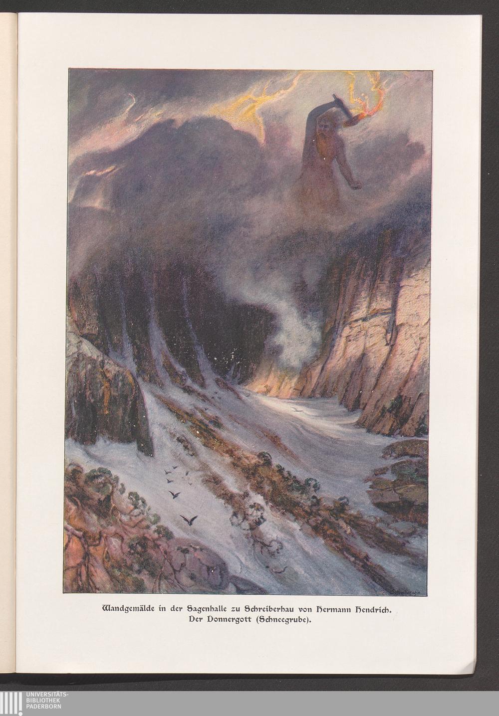 Die Sagenhalle des Riesengebirges (Schreiberhau) : der Mythus von Wotan-Rübezahl in Werken der bildenden Kunst / 8 Bilder von Hermann Hendrich. Rübezahl-Standbild von Hugo Schuchardt. Bauwerk von Paul Engler ; der schlafende Wotan / Standbild von Rudolf Maison. Erl. von Bruno Wille