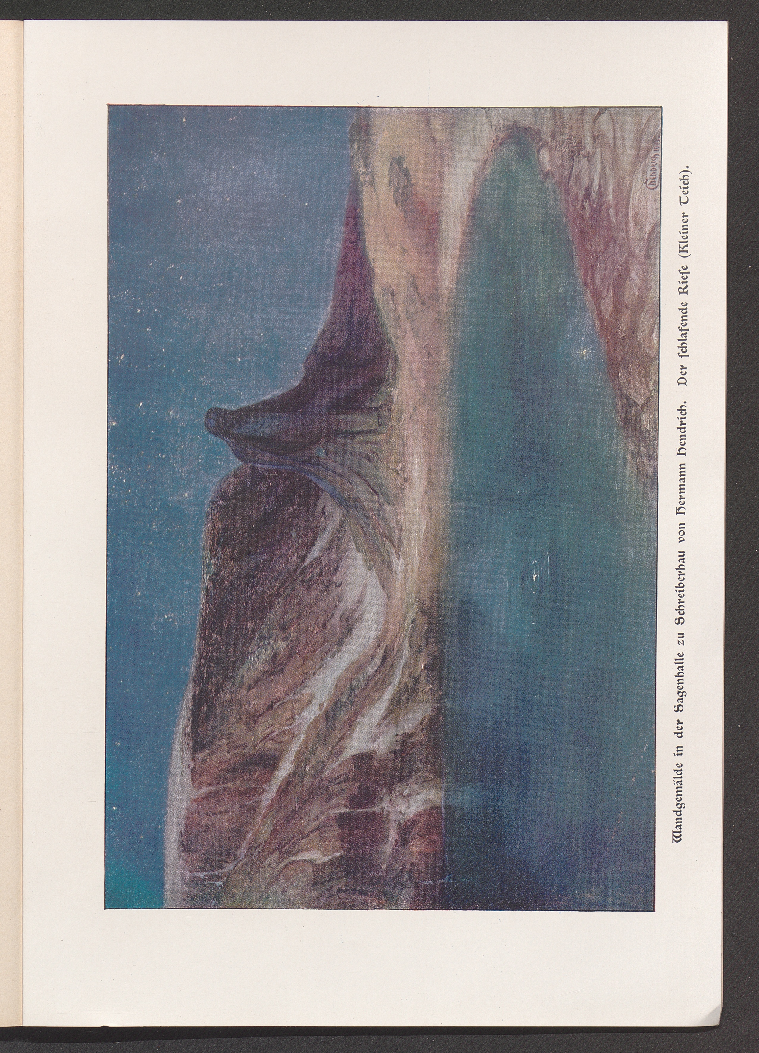 Die Sagenhalle des Riesengebirges (Schreiberhau) : der Mythus von Wotan-Rübezahl in Werken der bildenden Kunst / 8 Bilder von Hermann Hendrich. Rübezahl-Standbild von Hugo Schuchardt. Bauwerk von Paul Engler ; der schlafende Wotan / Standbild von Rudolf Maison. Erl. von Bruno Wille
